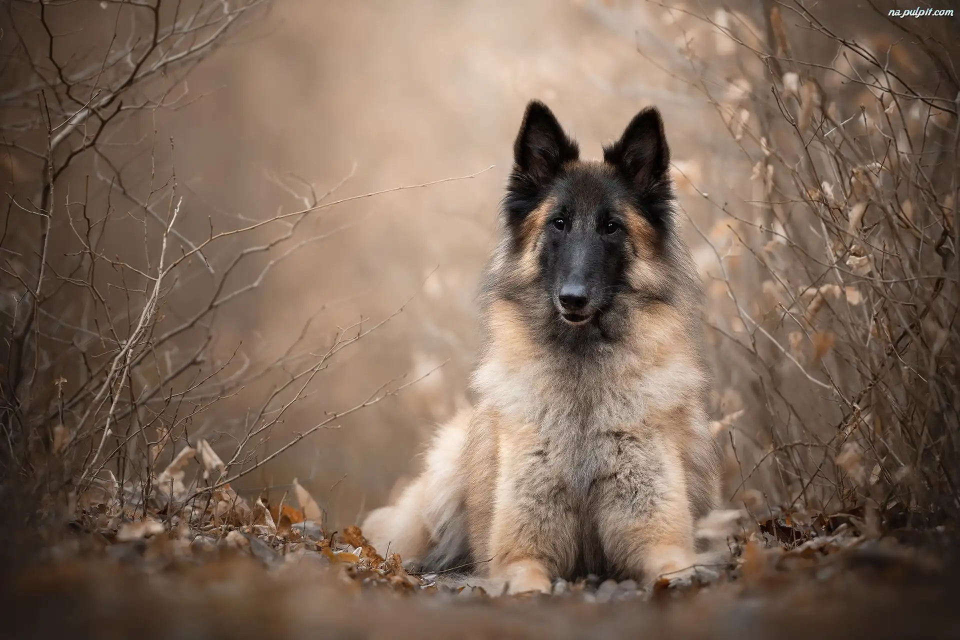 Rozmyte tło, Owczarek belgijski Tervueren, Pies, Rośliny Na Pulpit