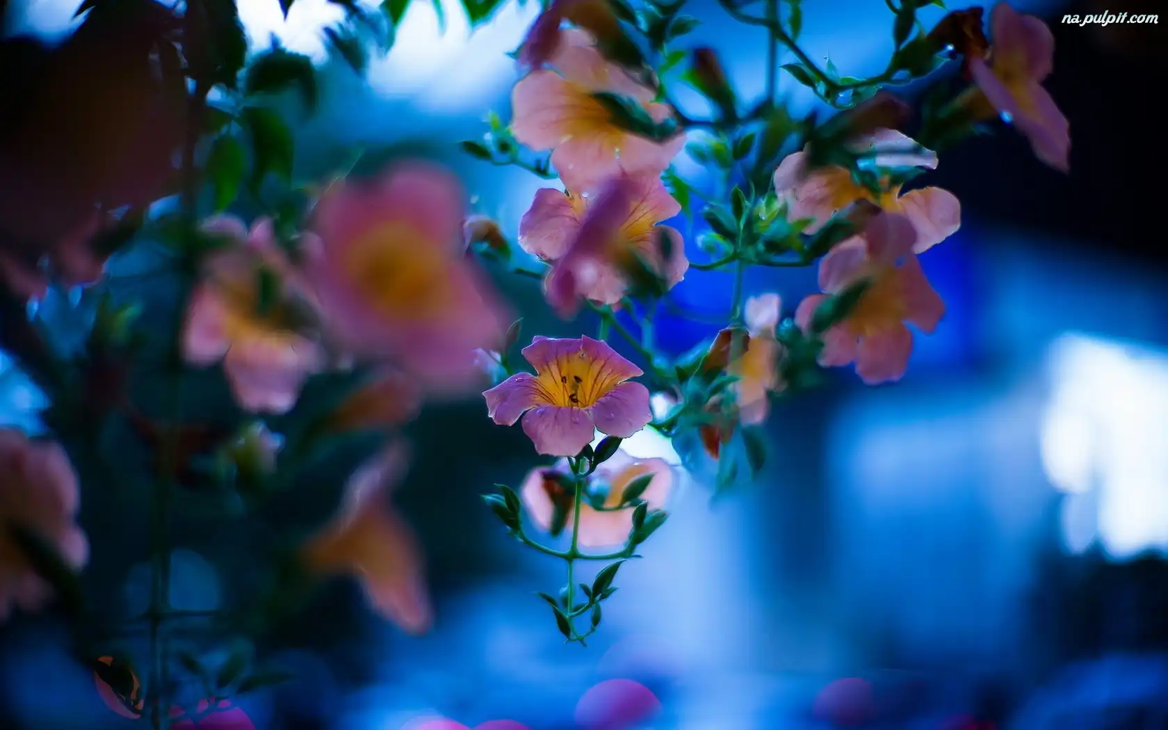 Tło, Kwiatuszki, Różowe, Niebieskie