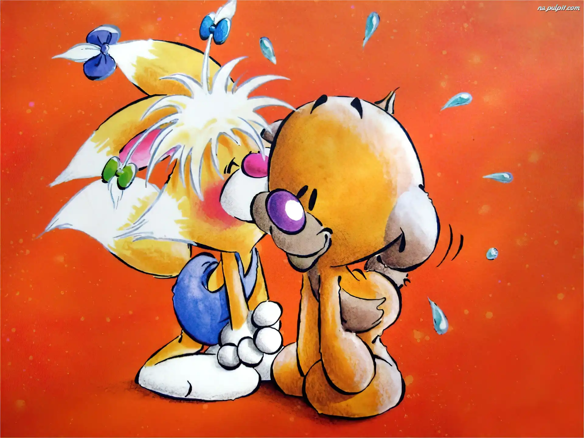 tło, miś, pocałunek, Słodkie, pomarańczowe Na Pulpit