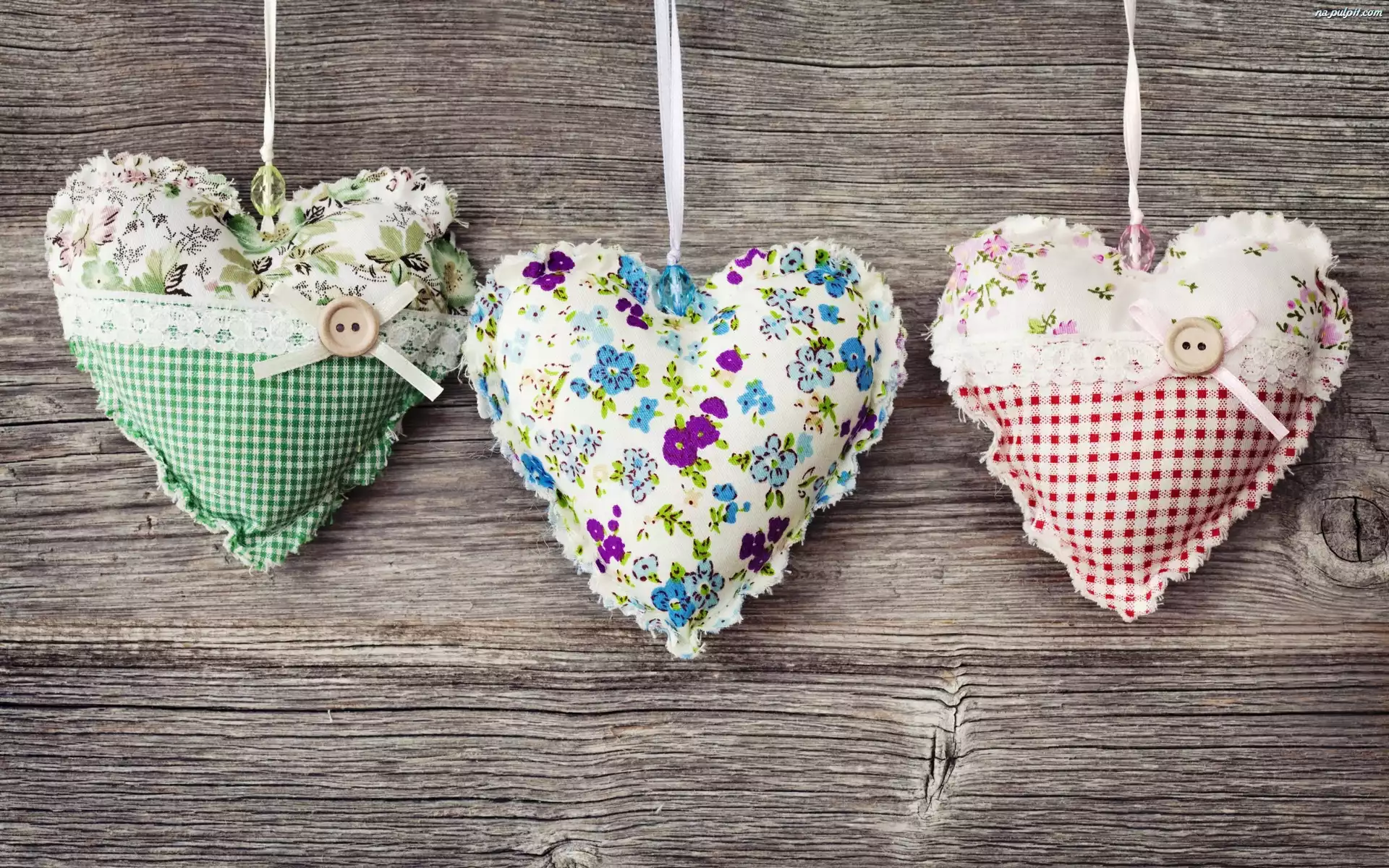 Tło, Serduszka, Tkaninowe, Drewniane