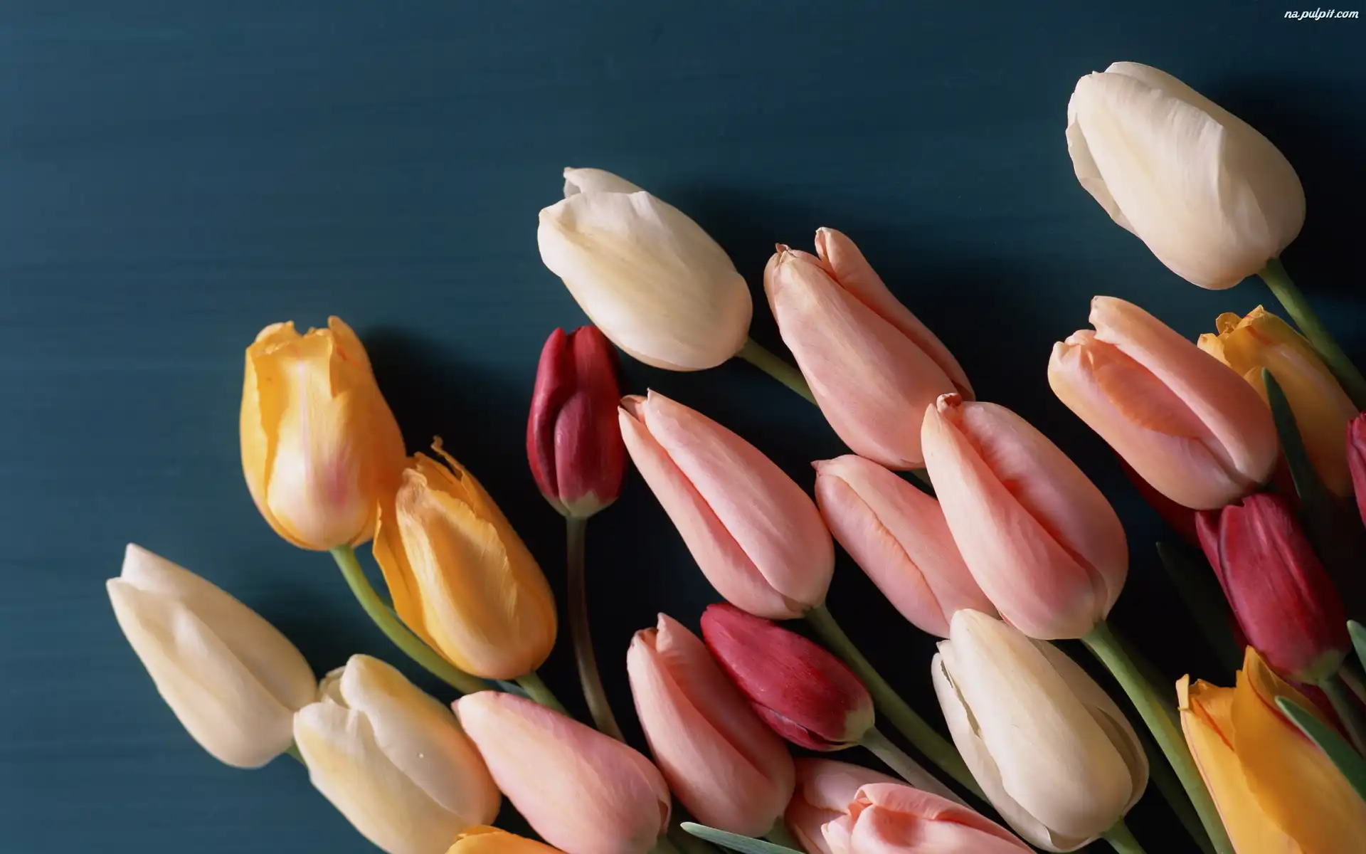 Tło, Kolorowe, Tulipany, Niebieskie Na Pulpit