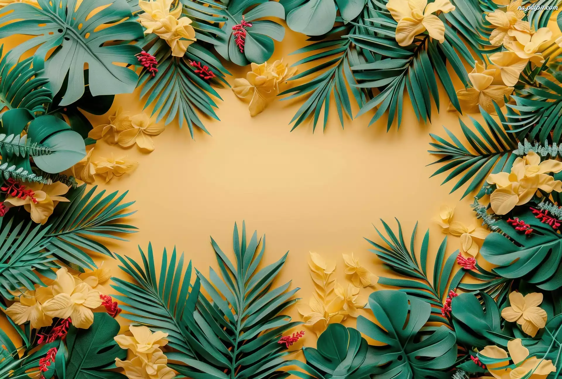 Żółte, Kwiaty, Liście, Tło Na Pulpit