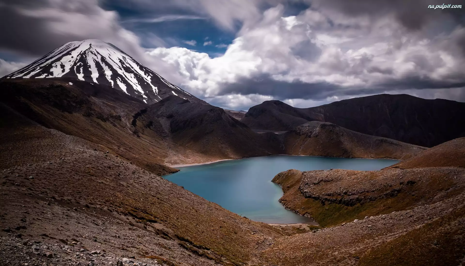 Jezioro, Góry, Chmury, Tama Lake, Nowa Zelandia, Park Narodowy Tongariro Na Pulpit