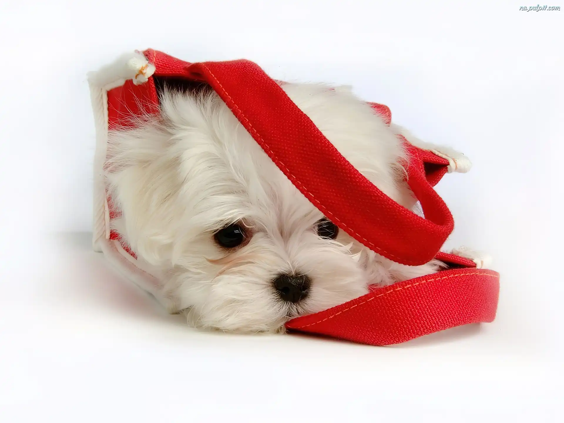 Torba, Szczeniaczek, Biały, Czerwona Na Pulpit