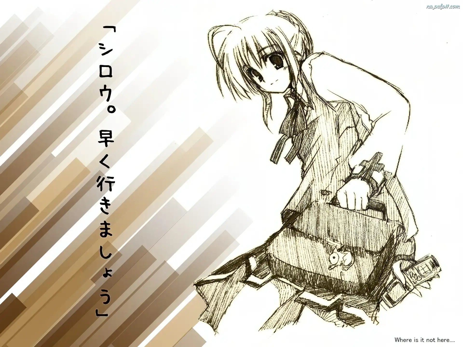 napis, torba, dziewczyna, Fate Stay Night, szkic Na Pulpit