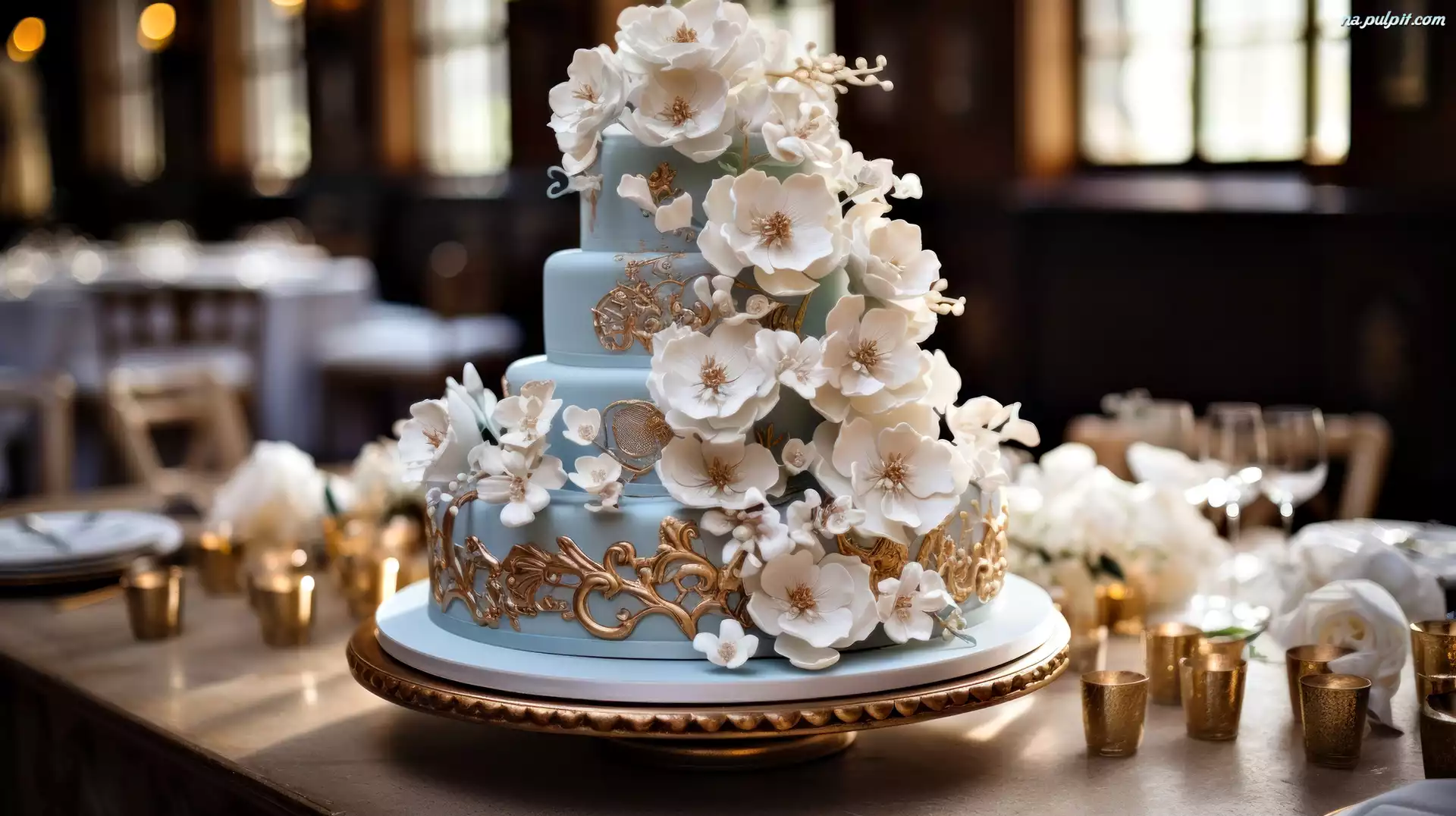 Kwiaty, Tort, Weselny, Grafika, Białe Na Pulpit