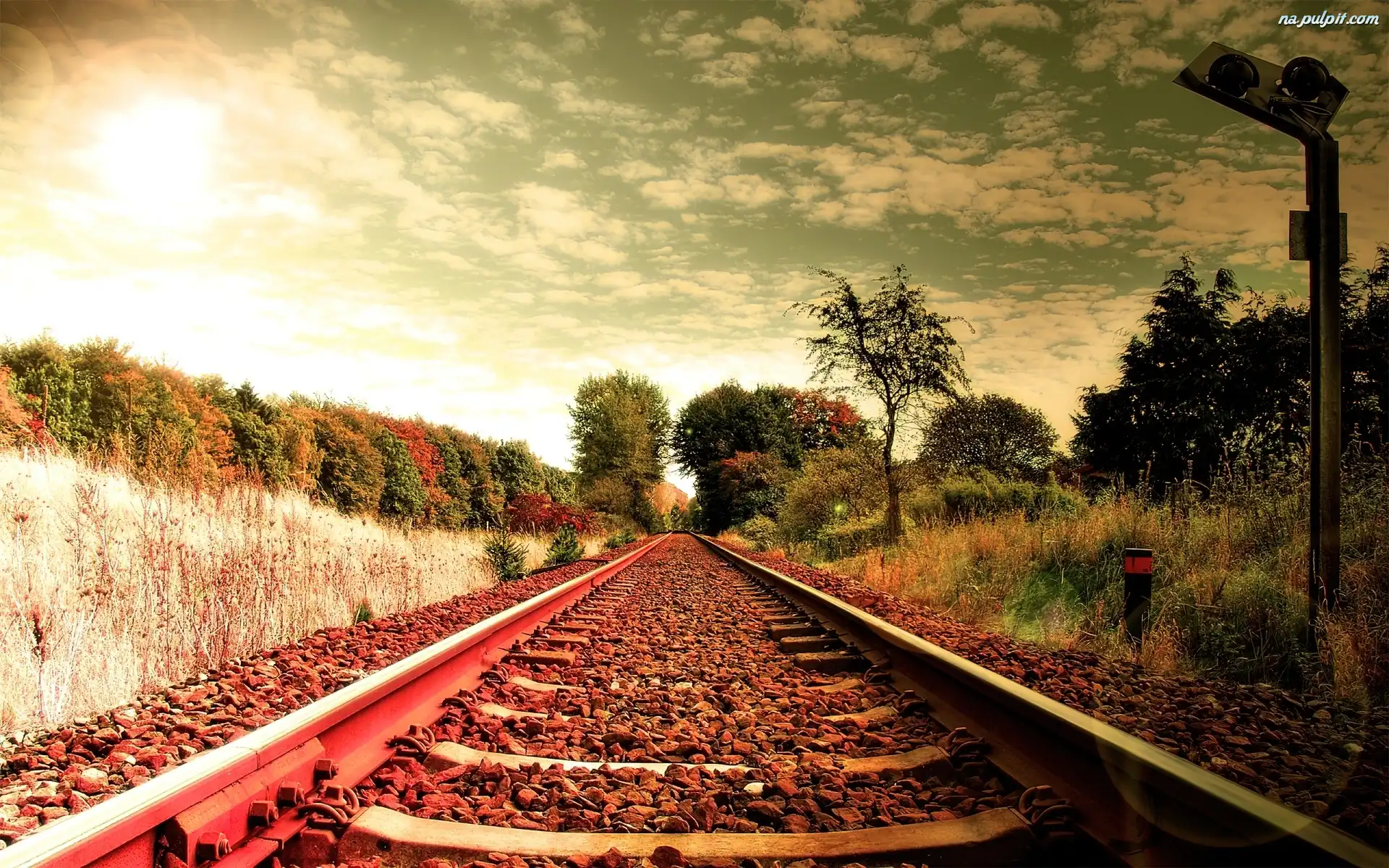 Słońce, Tory, Chmury Na Pulpit