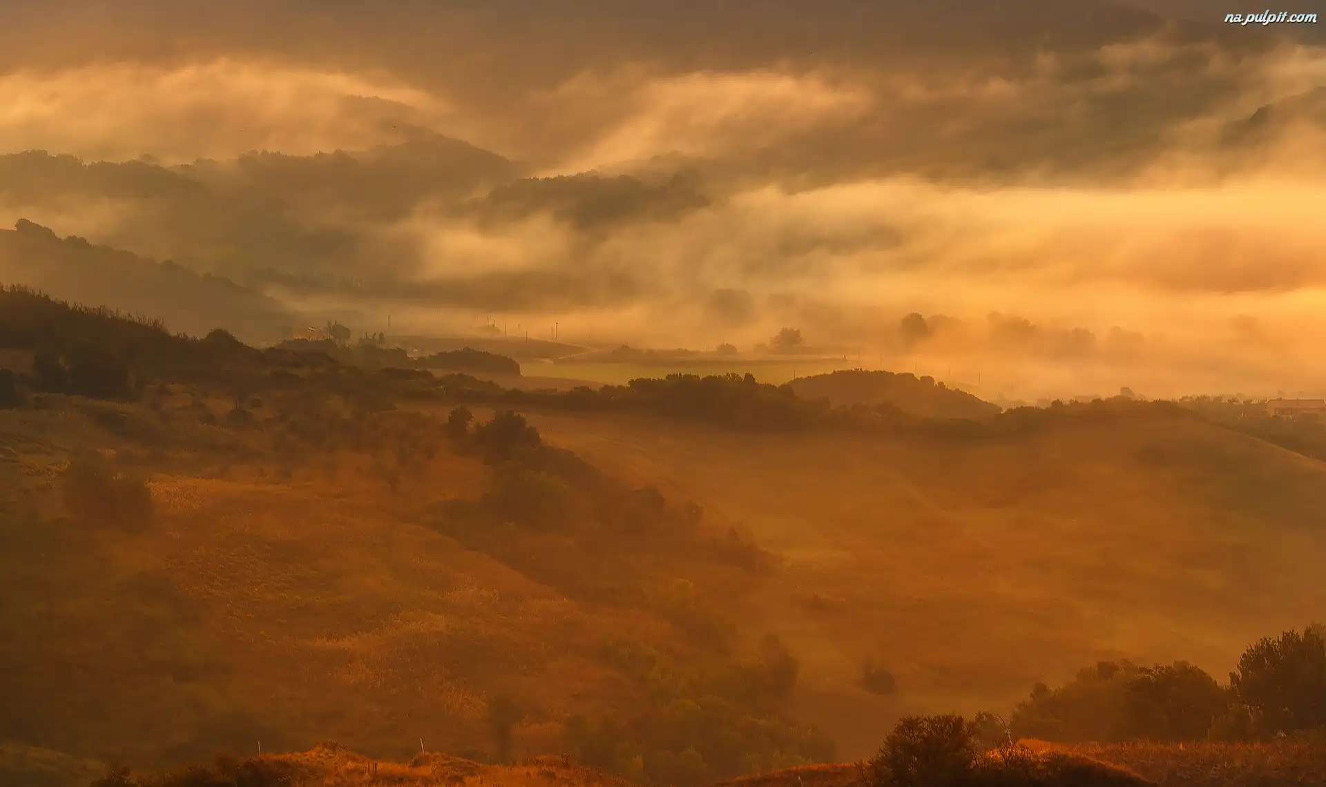 Toskania, Drzewa, Wzgórza, Mgła, Włochy, Łąki Na Pulpit