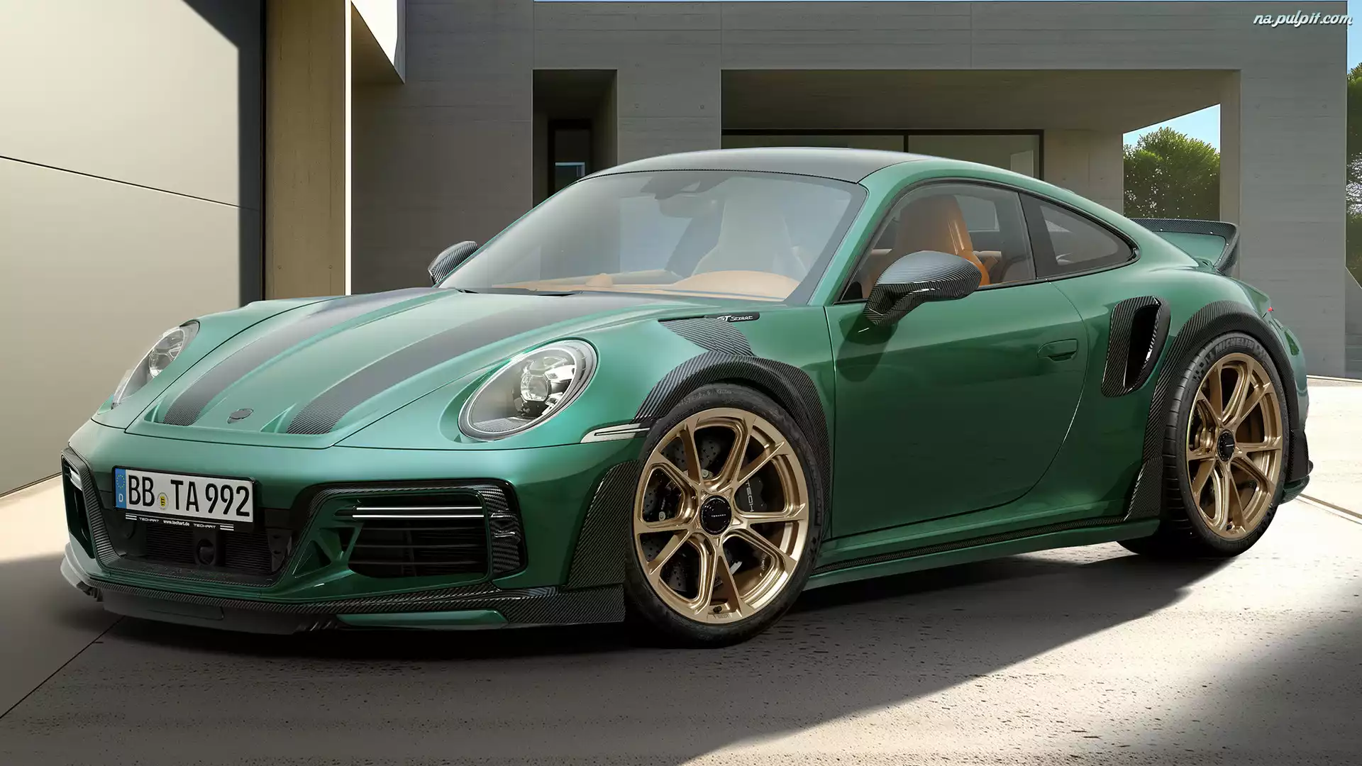 Porsche 911 Turbo, Zielone, Techart GTstreet R Touring Na Pulpit