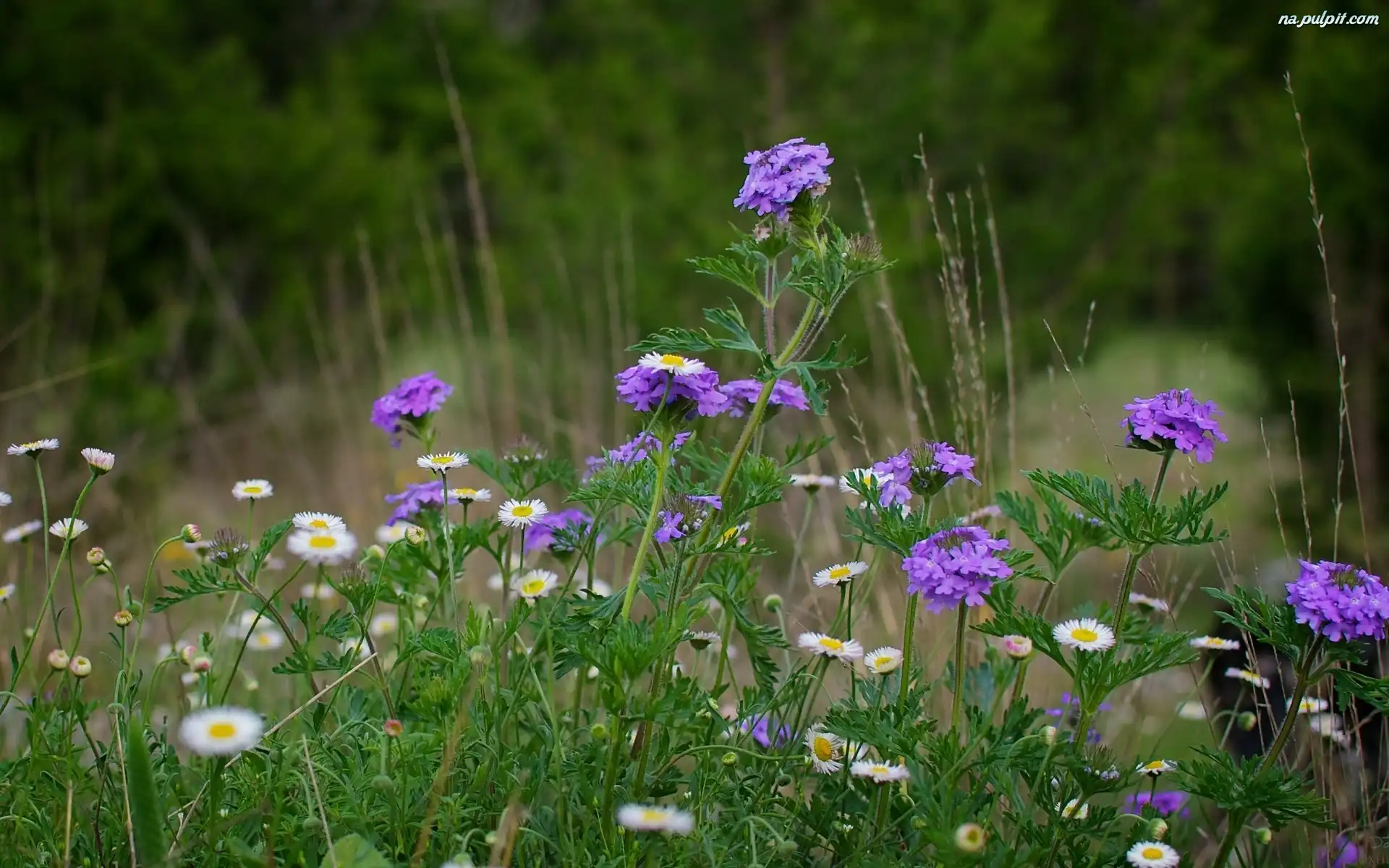Kwiaty, Stokrotki, Łąka, Fioletowe Na Pulpit