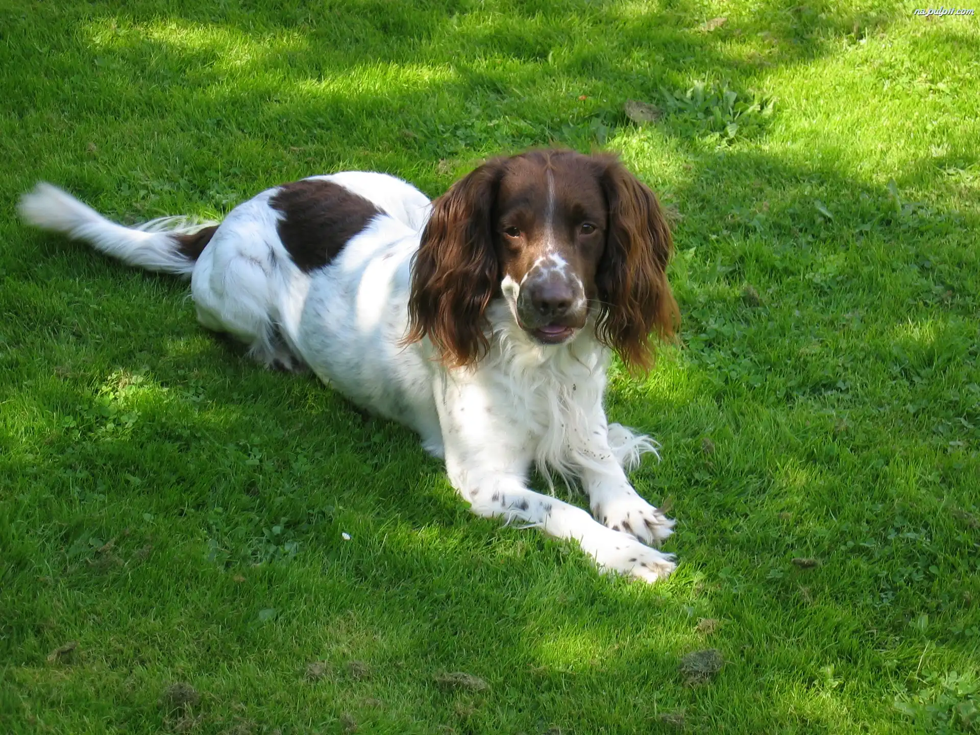 trawa, Springer spaniel angielski, zielona Na Pulpit