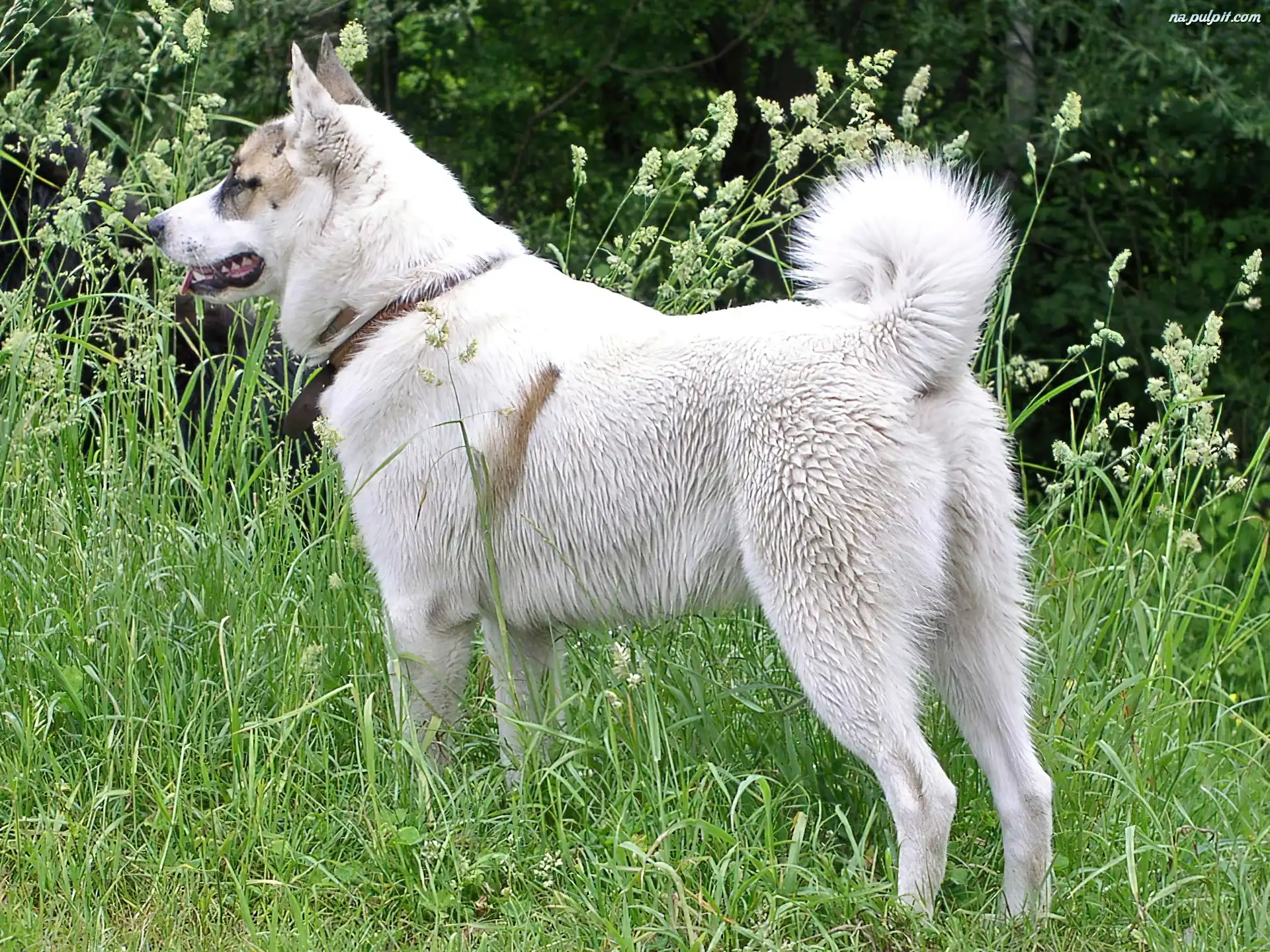 trawa, Łajka zachodniosyberyjska, biała, zielona Na Pulpit