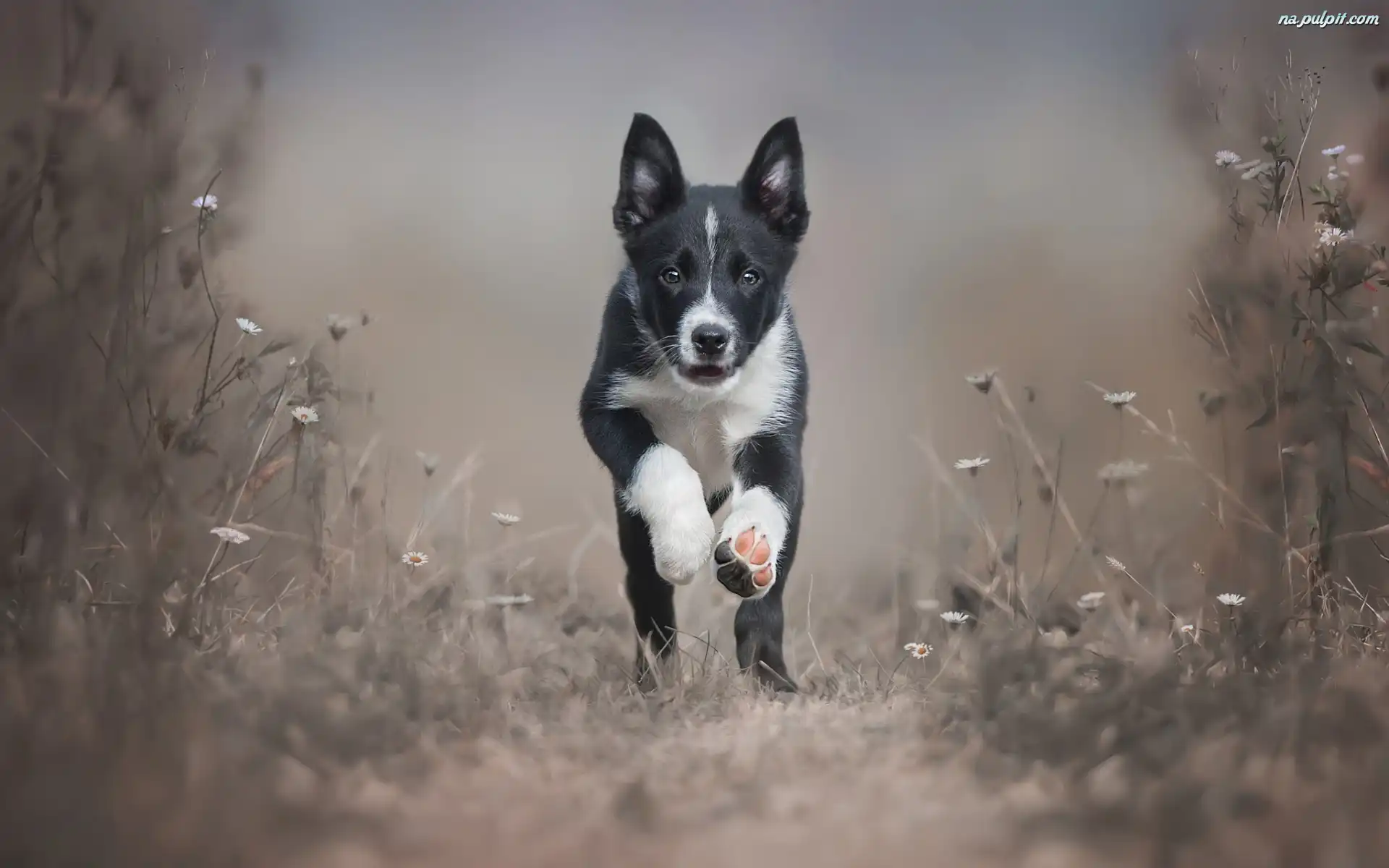 Trawa, Szczeniak, Biegnący, Border collie Na Pulpit