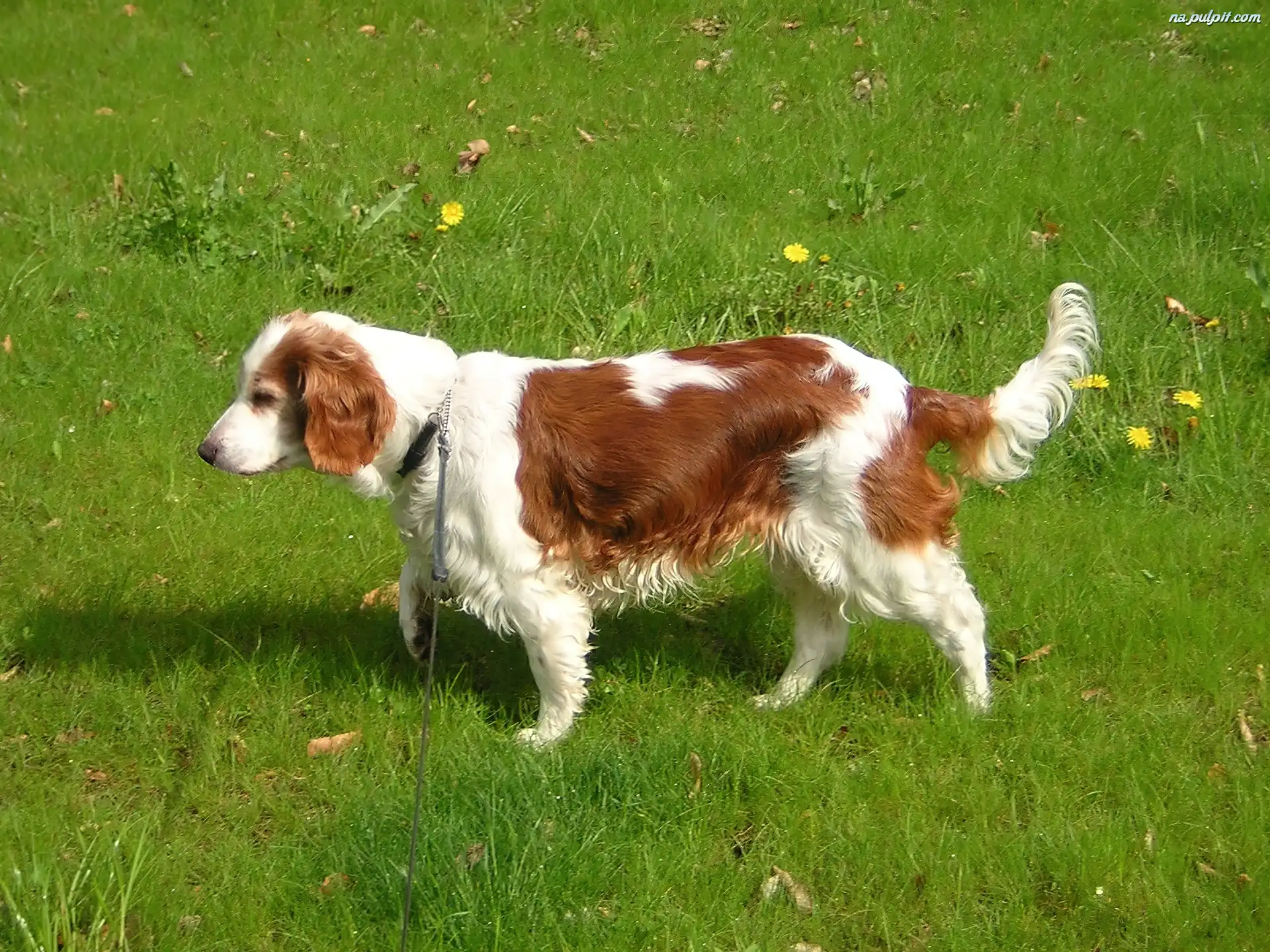 trawa, Springer spaniel walijski, duży, soczysta Na Pulpit