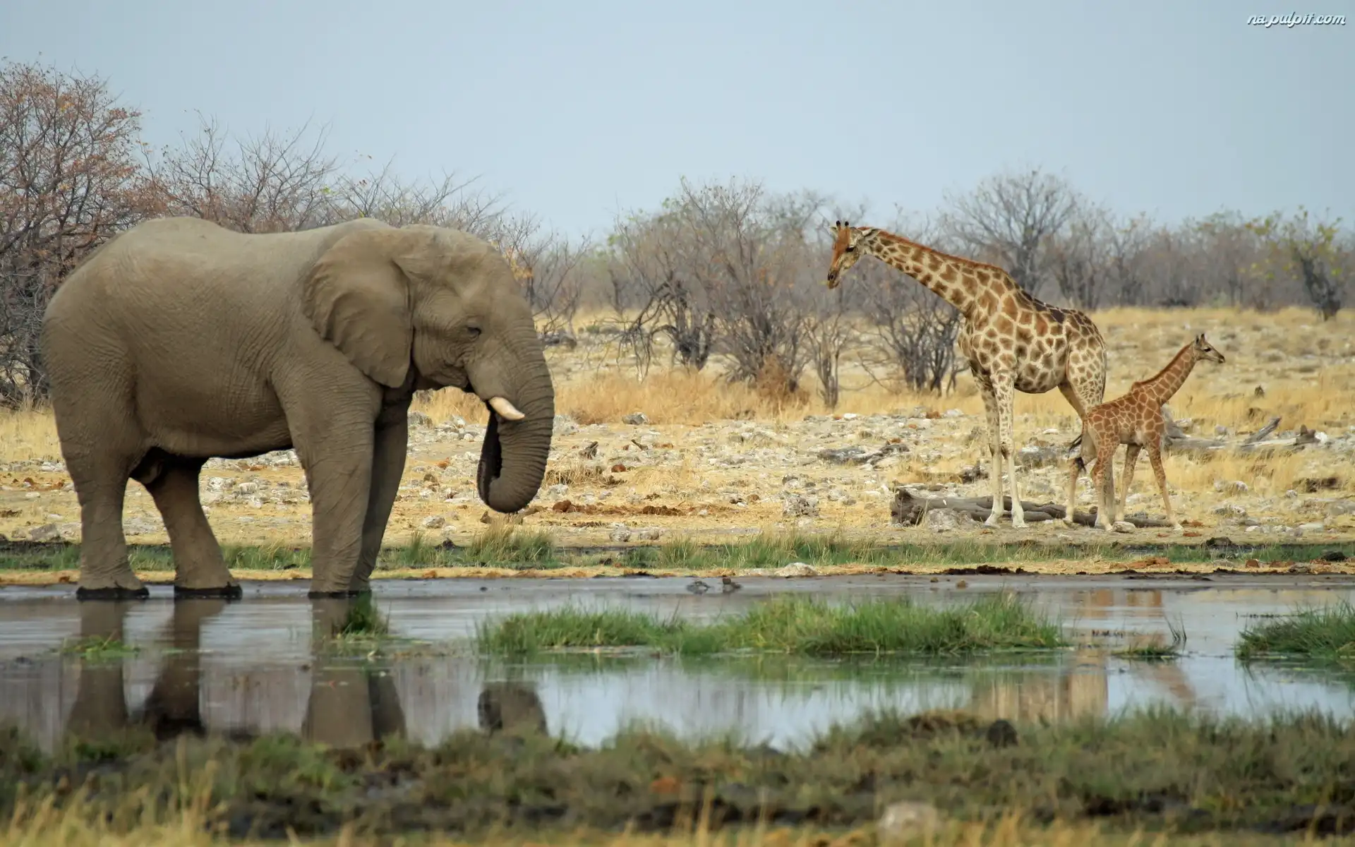Trawa, Słoń, Żyrafy, Dwie, Woda Na Pulpit