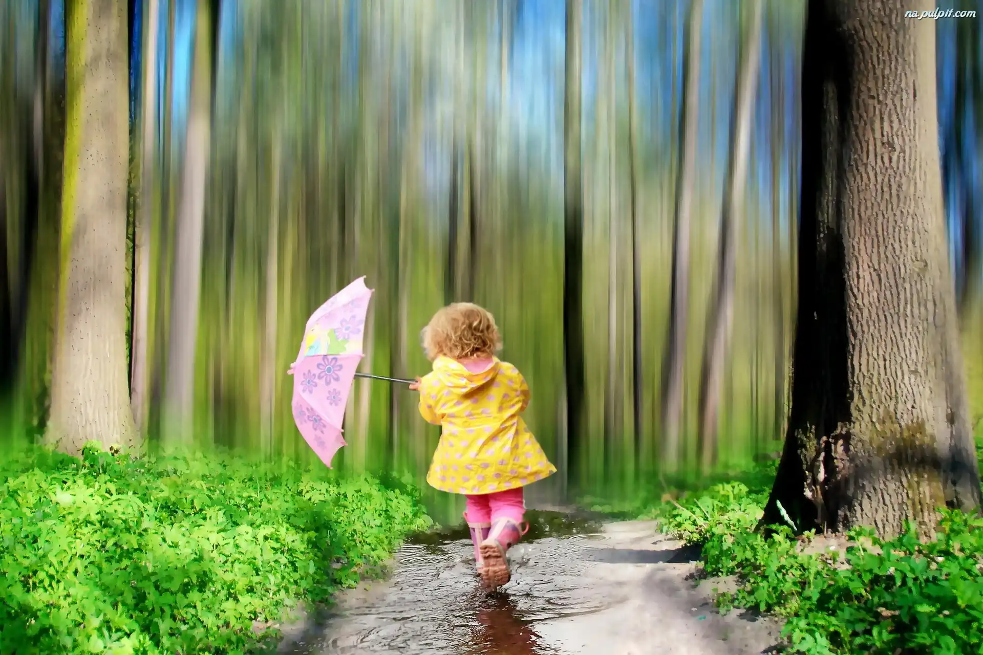 Trawa, Drzewa, Dziecko, Parasol Na Pulpit