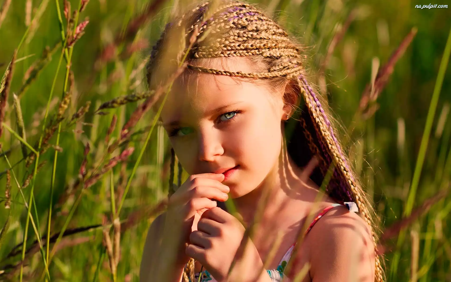 Trawa, Twarz, Dziewczynka, Warkoczyki Na Pulpit