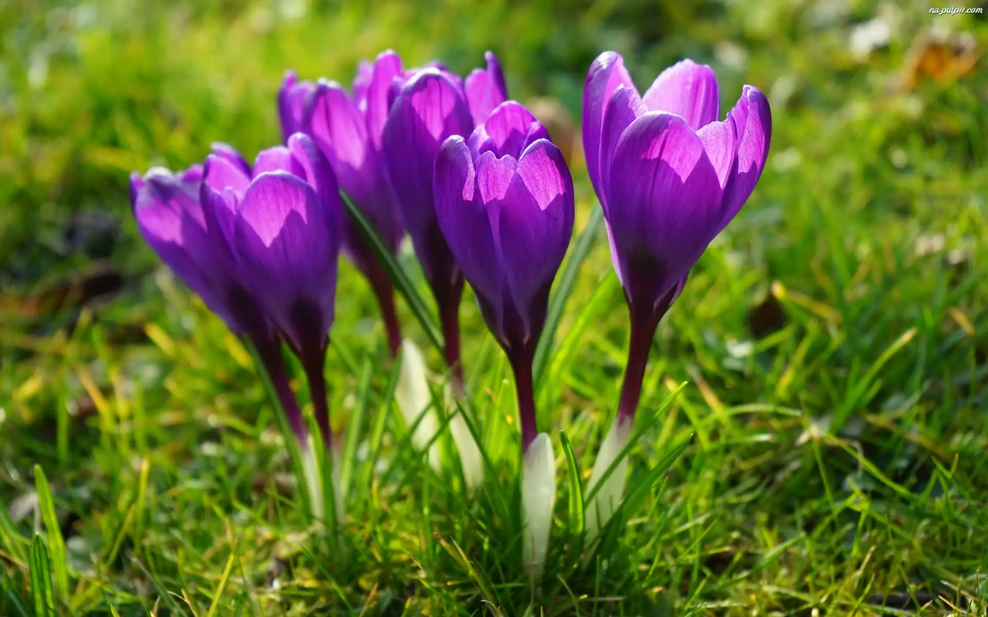 Trawa, Krokusy, Fioletowe, Kępka Na Pulpit