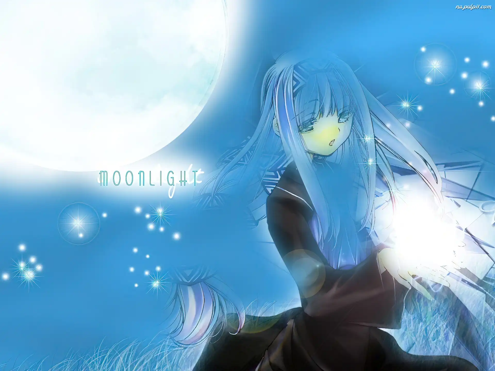 trawa, księżyc, gwiazdy, Erementar Gerad, dziewczynka Na Pulpit