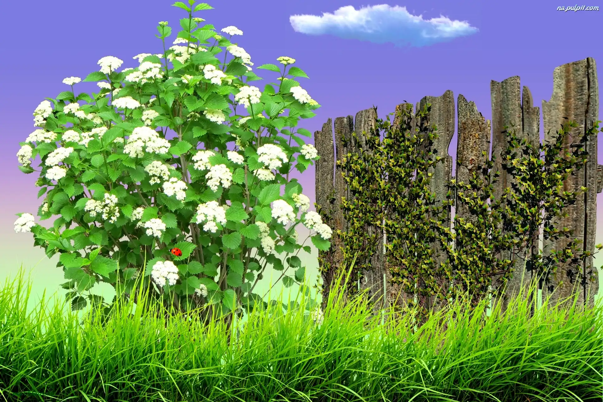 Trawa, Krzew, Grafika, Płot Na Pulpit