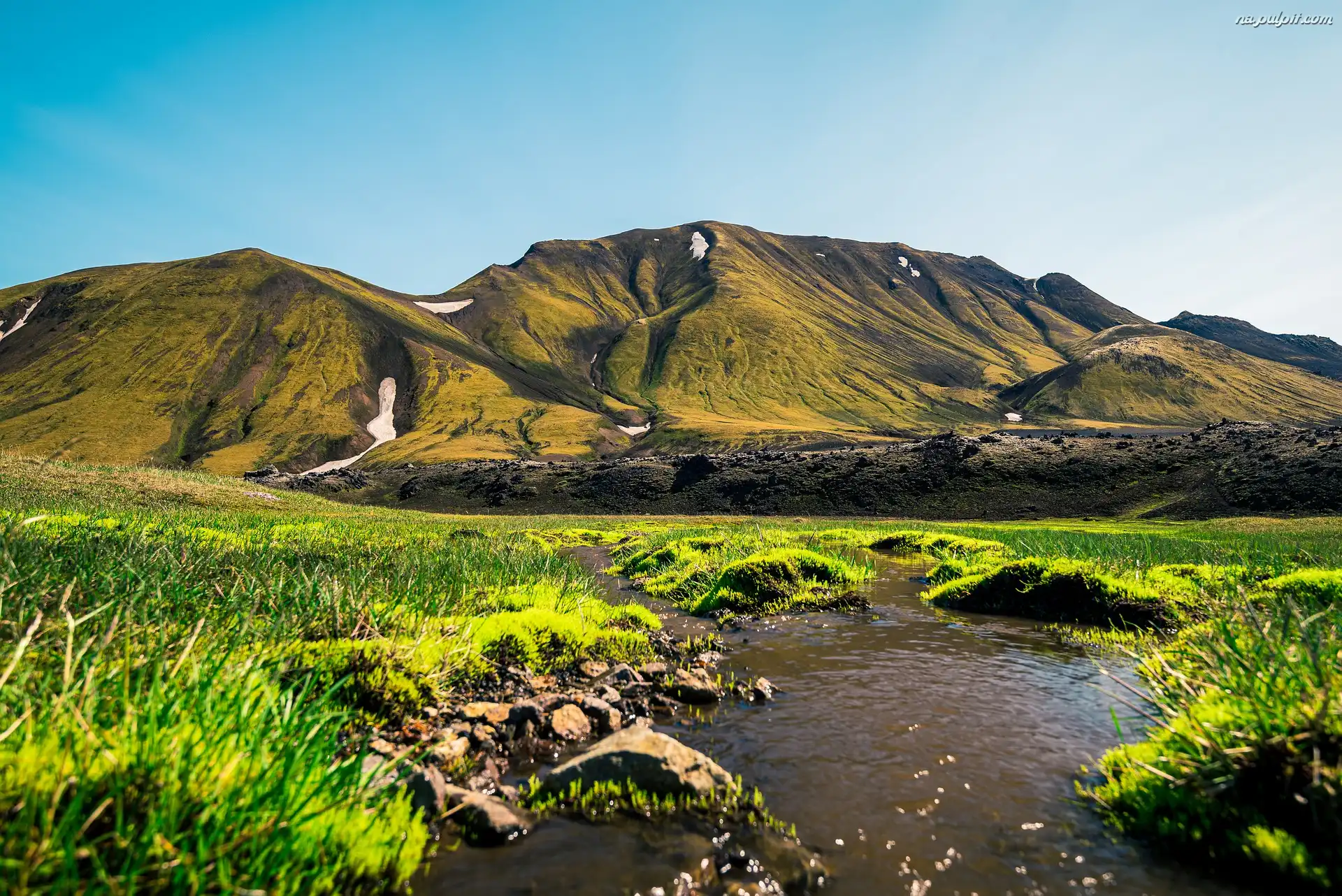 Trawa, Rzeka, Góry, Islandia, Zielona Na Pulpit