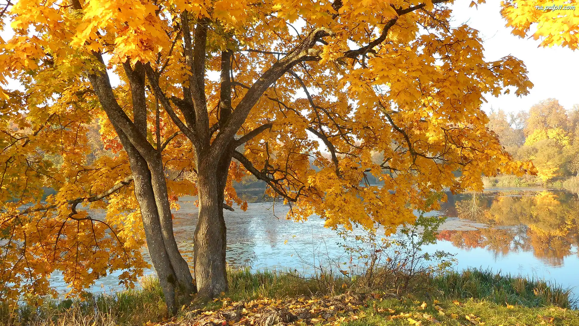 Trawa, Klon, Drzewo, Jesień, Rzeka Na Pulpit