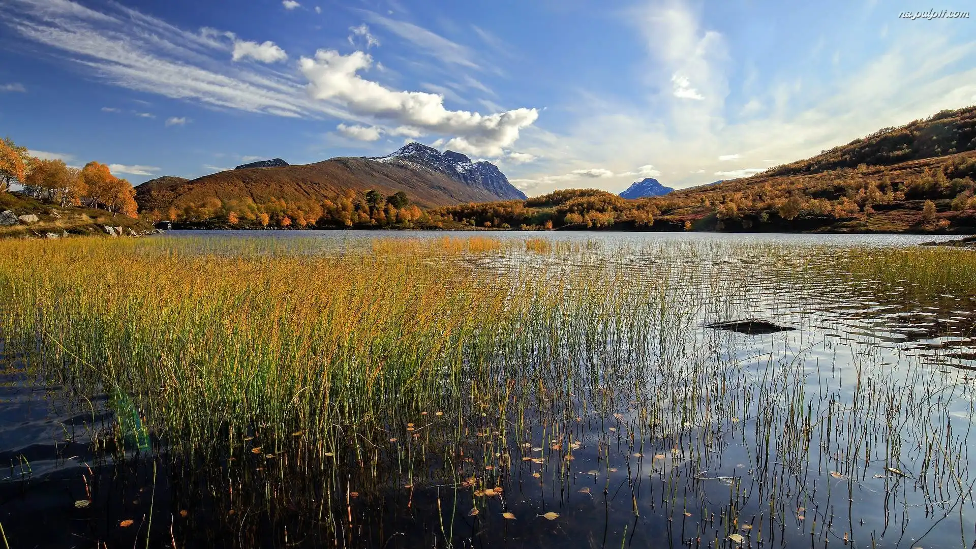 Trawa, Jezioro, Góry, Jesień, Drzewa Na Pulpit