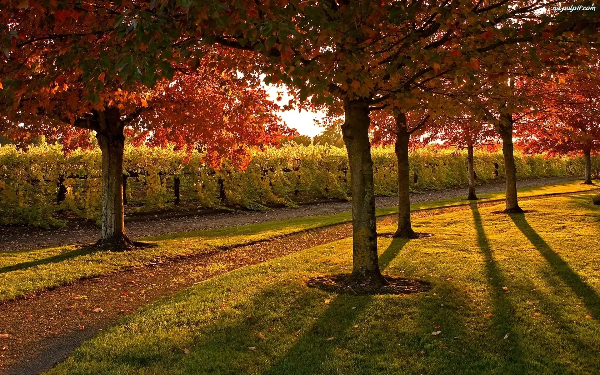 Trawa, Park, Jesień, Drzewa Na Pulpit