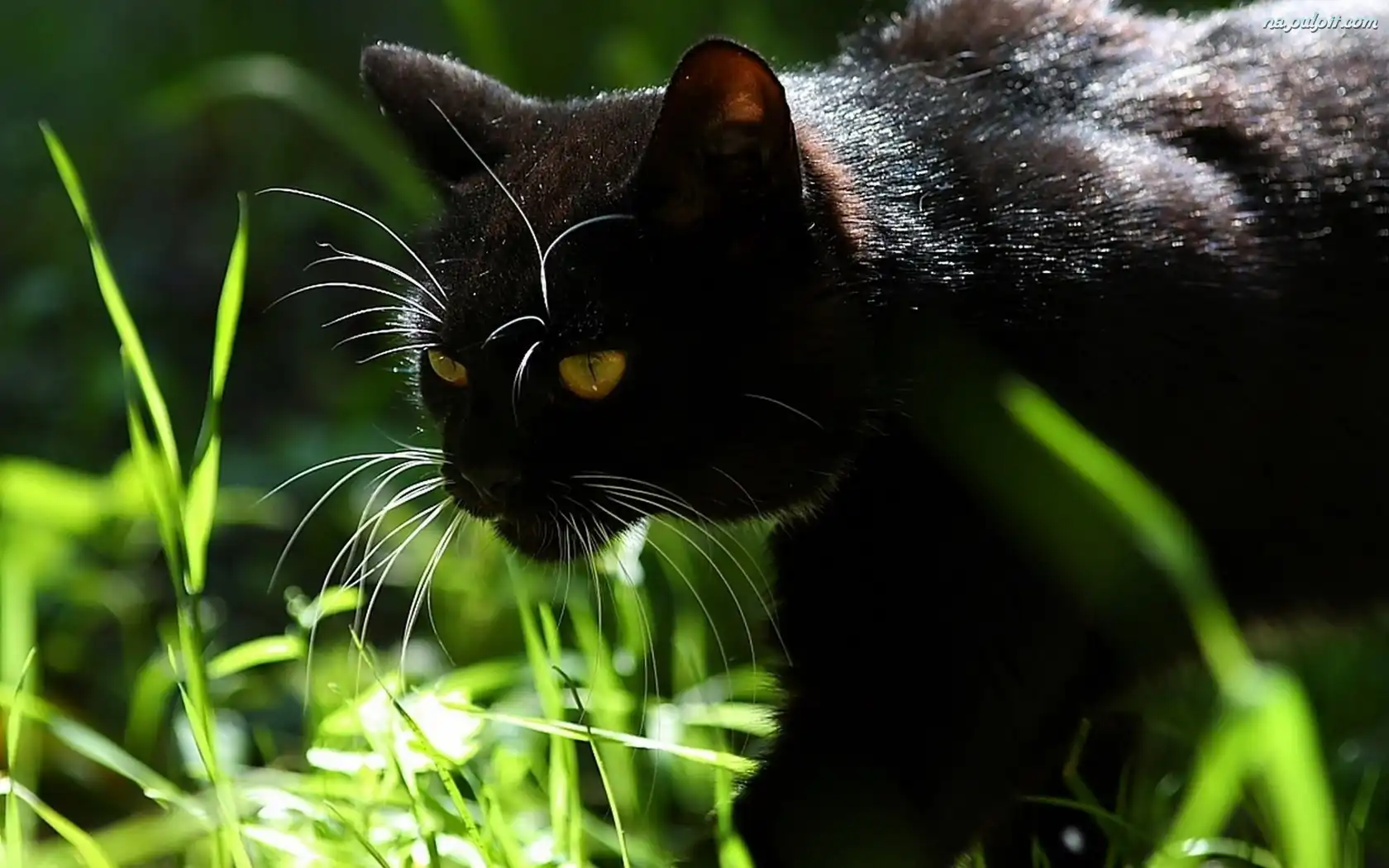 Trawa, Czarny, Kot, Wąsy Na Pulpit