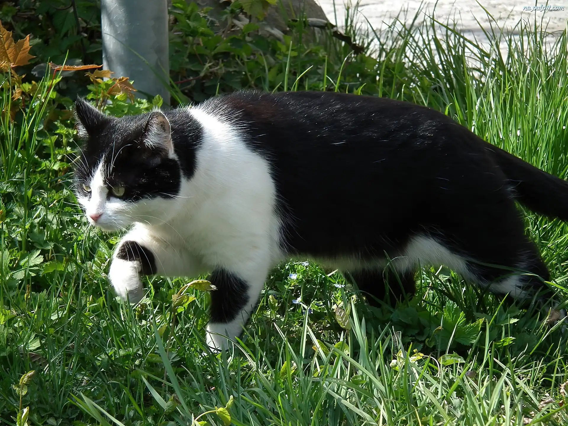Trawa, Czarno, Kotek, Biały Na Pulpit