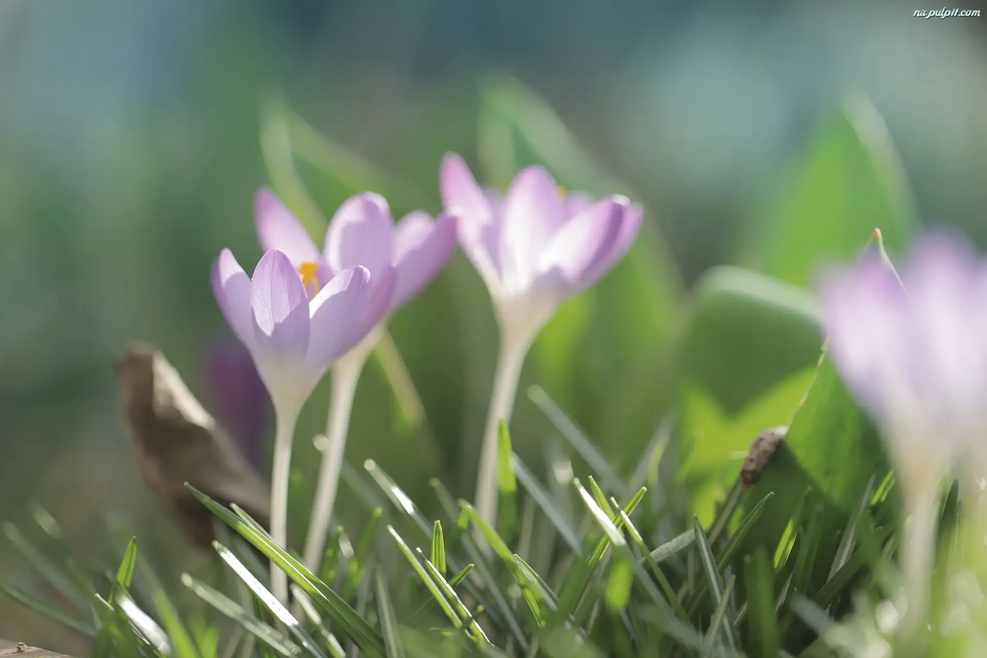 Trawa, Fioletowe, Krokusy, Kwiaty Na Pulpit