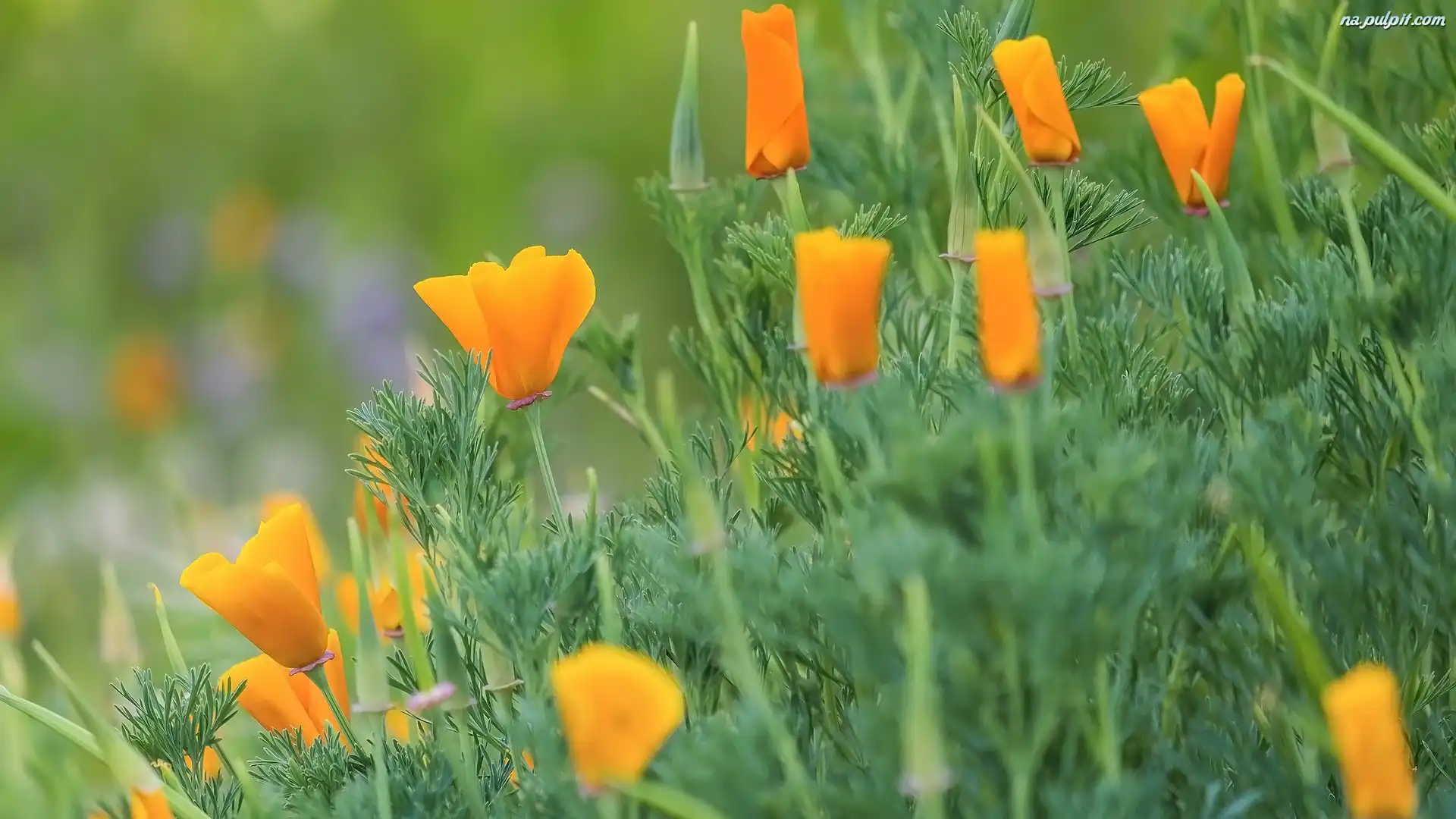 Trawa, Maczki kalifornijskie, Kwiaty, Pozłotki Na Pulpit