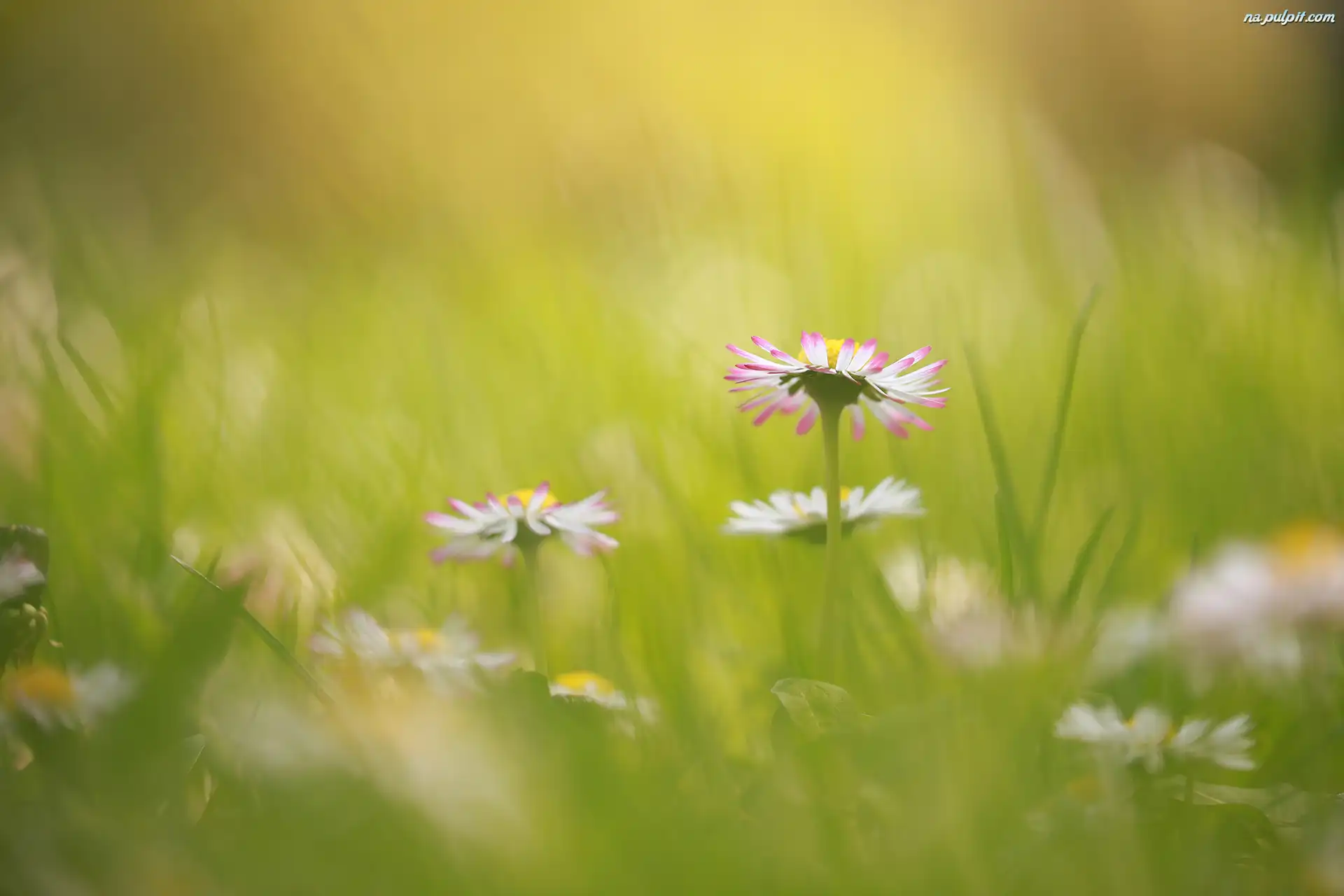 Biedronki, Kwiaty, Wiosna, Stokrotki Wiele, Stokrotek Stokrotki, Morska, Świnka, Trawa Promienie, Stokrotki, Łąka Kropelki, Suche, Trawa, Stokrotki, Liście Zbliżenie, Źdźbło, Trawy Kwiat, Różowa, Stokrotka Deszczu, Trawa, Krople Kwiaty, Tło, Stokrotka, Żółte Stokrotki, Mała, Gąska Kulki, Trawa, Kolorowe Stokrotki Stokrotki Kosmea, Fioletowo, Biała