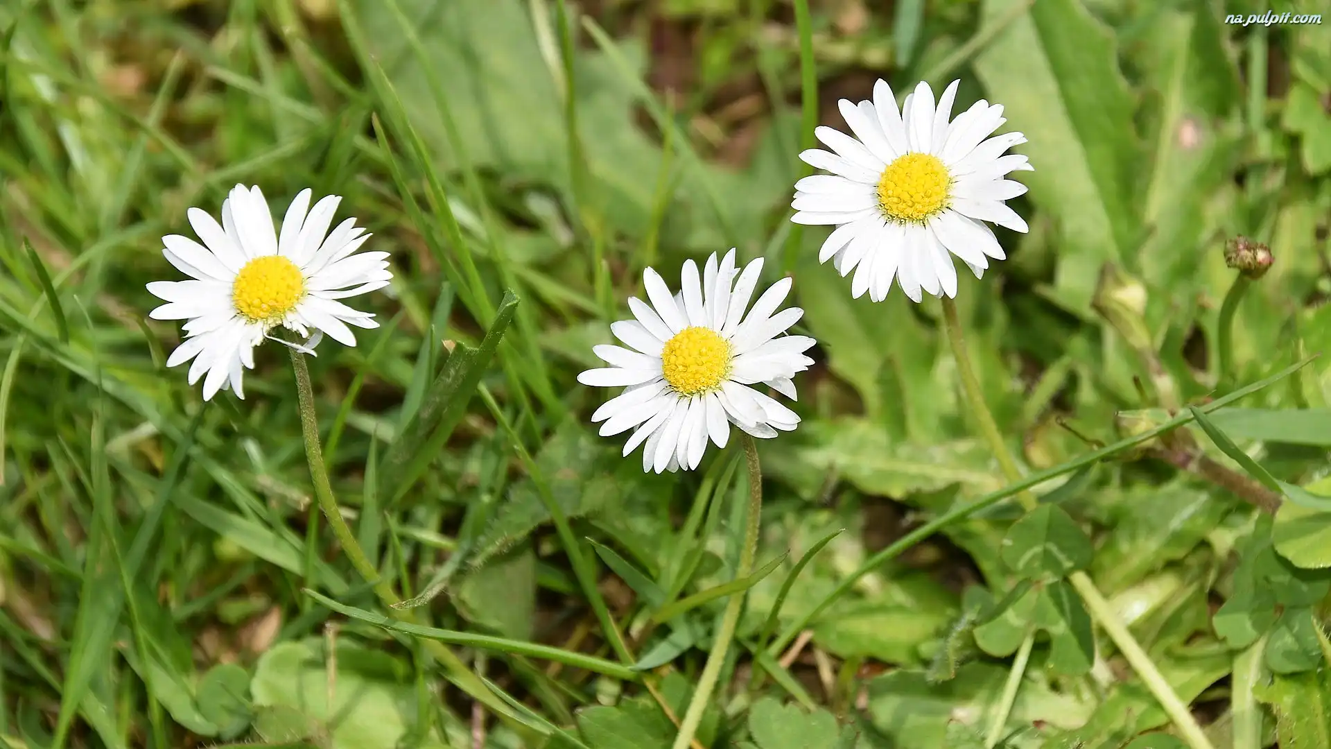 Trawa, Trzy, Kwiaty, Stokrotki Na Pulpit