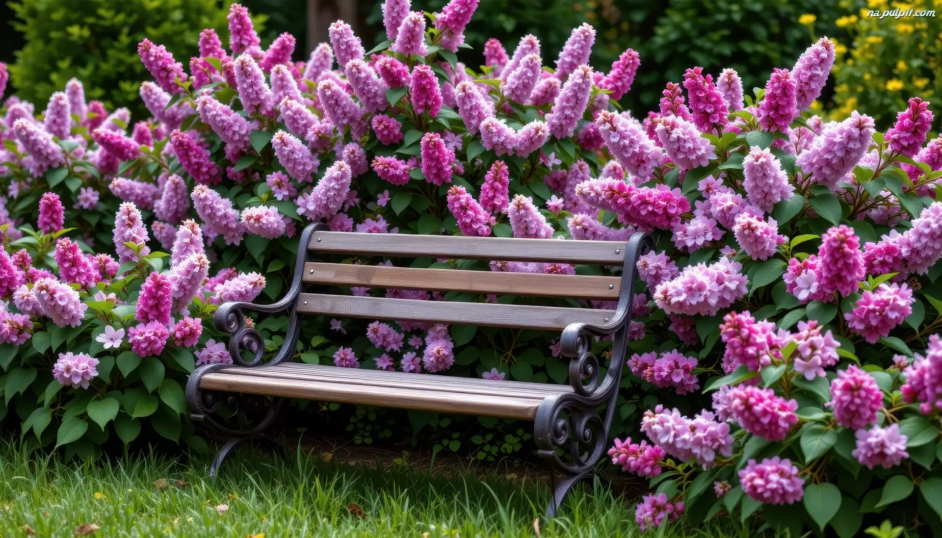 Ławka, Różowe, Kwiaty, Trawa Na Pulpit
