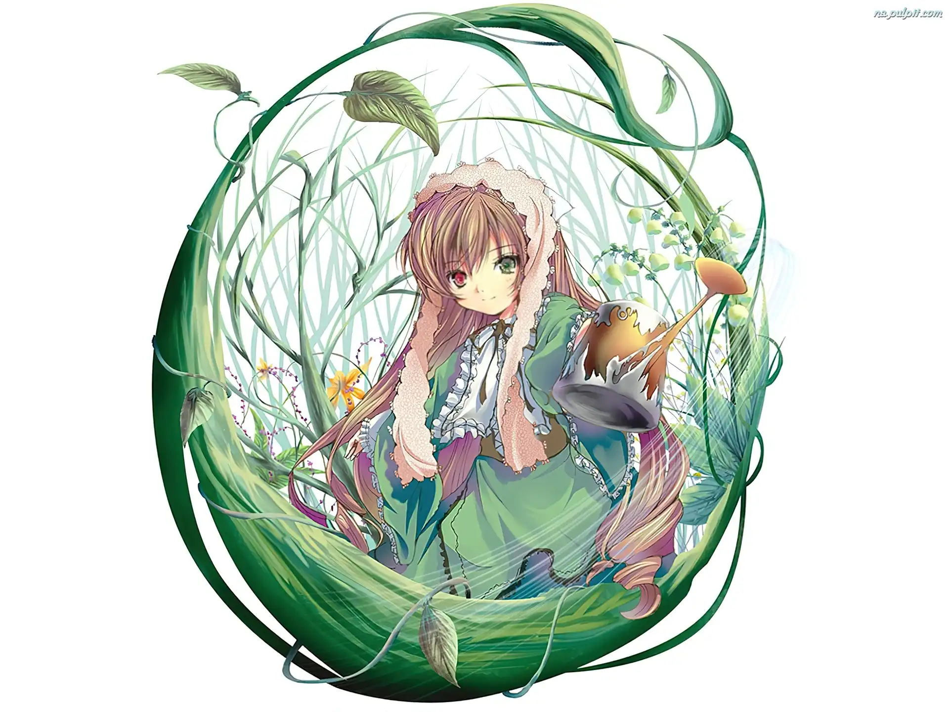 trawa, kobieta, Rozen Maiden, konewka Na Pulpit
