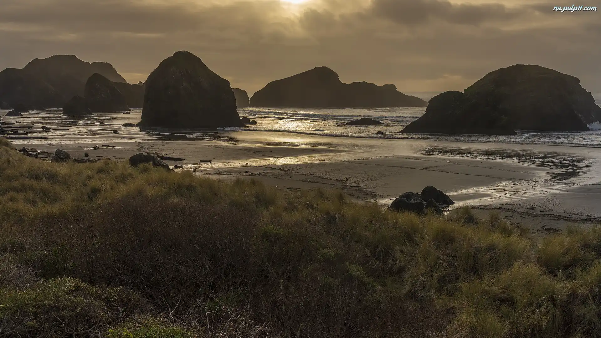 Trawa, Skały, Morze, Plaża Na Pulpit