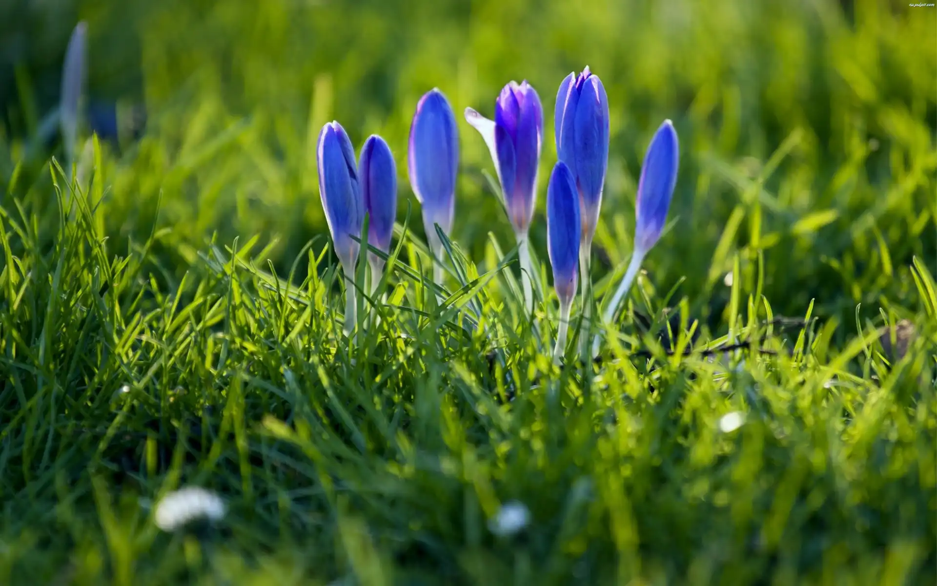 Trawa, Krokusy, Niebieskie, Wiosna Na Pulpit