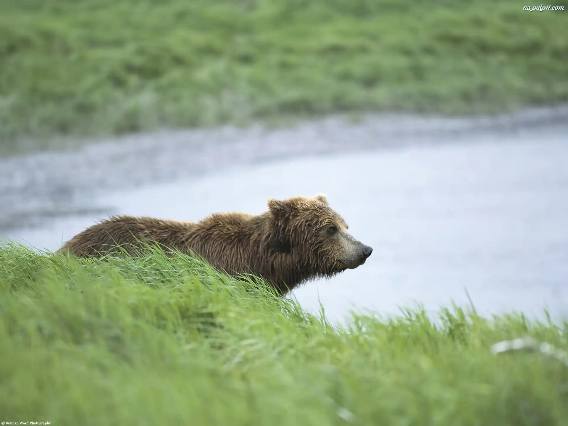 trawa, brunatny, Niedźwiedź, woda Na Pulpit