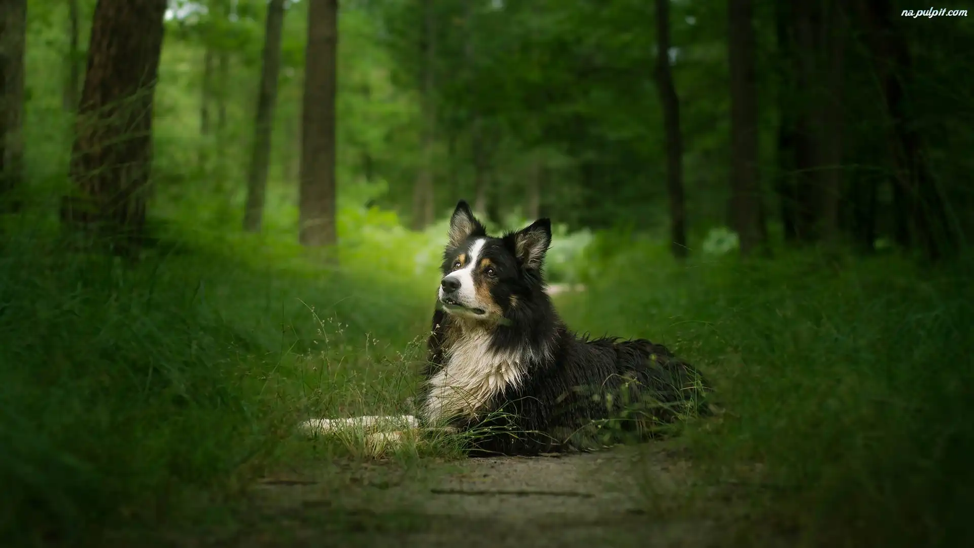Trawa, Border collie, Pies, Drzewa Na Pulpit