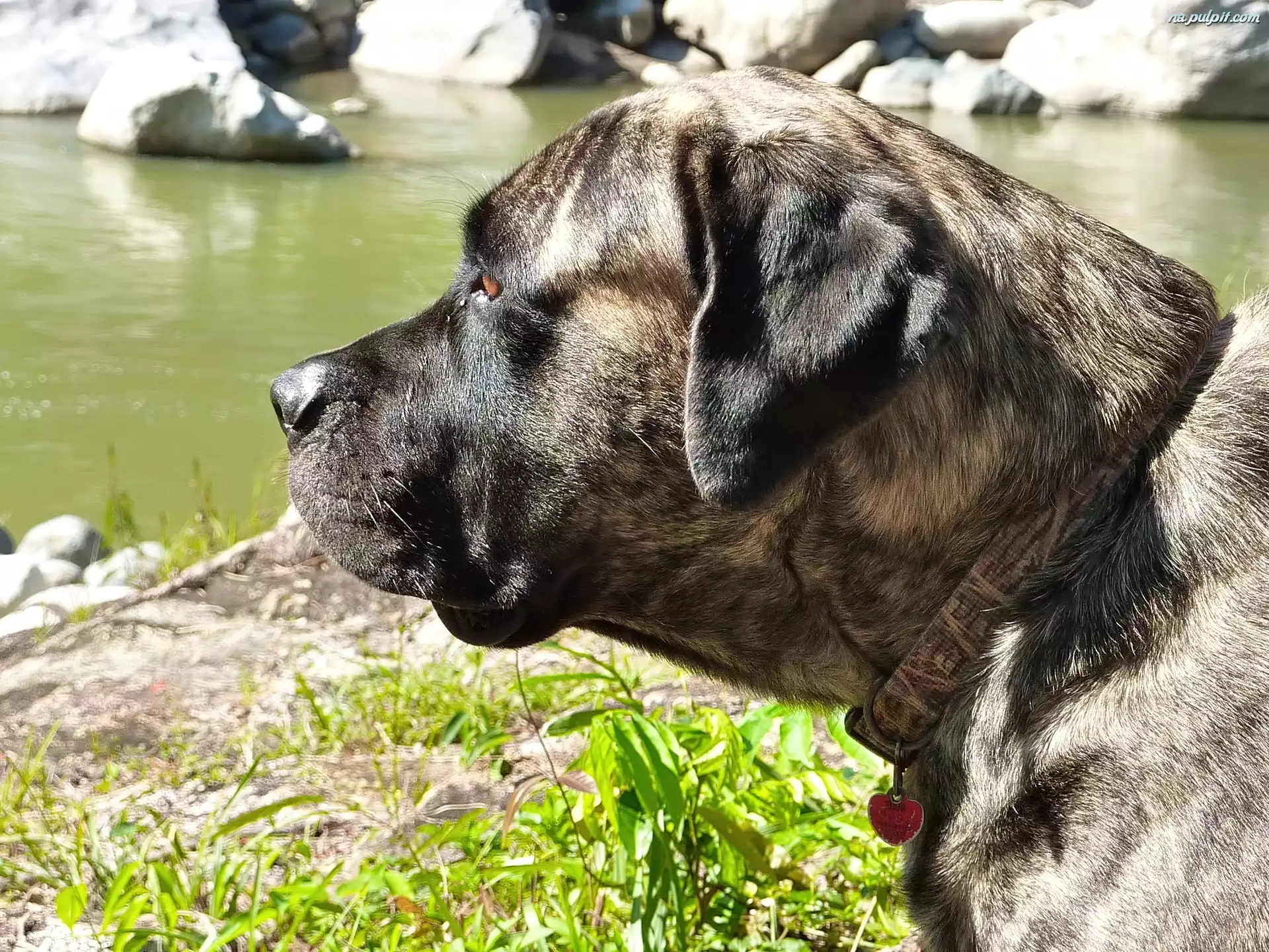 Trawa, Woda, Głowa, Piesek, Kamienie Na Pulpit
