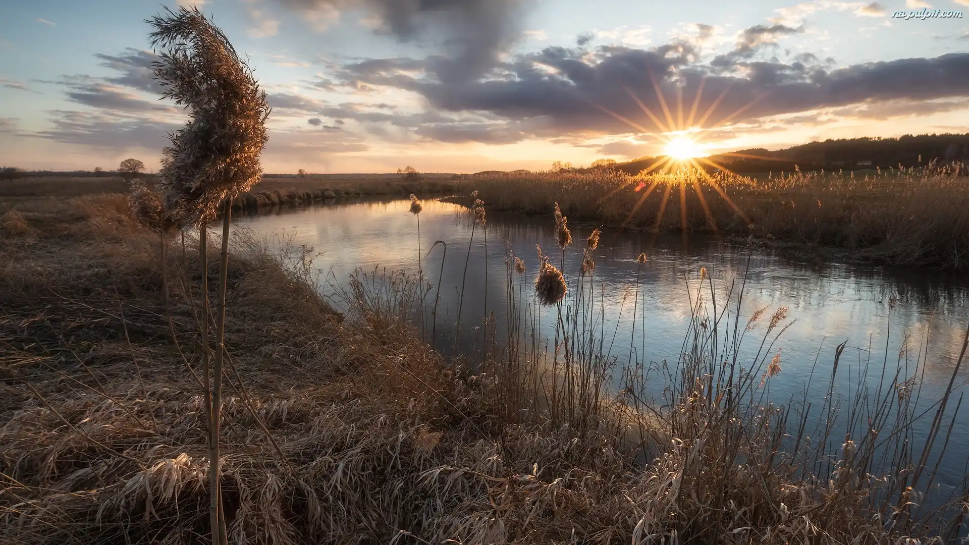 Trawa, Promienie słońca, Rzeka, Sucha Na Pulpit
