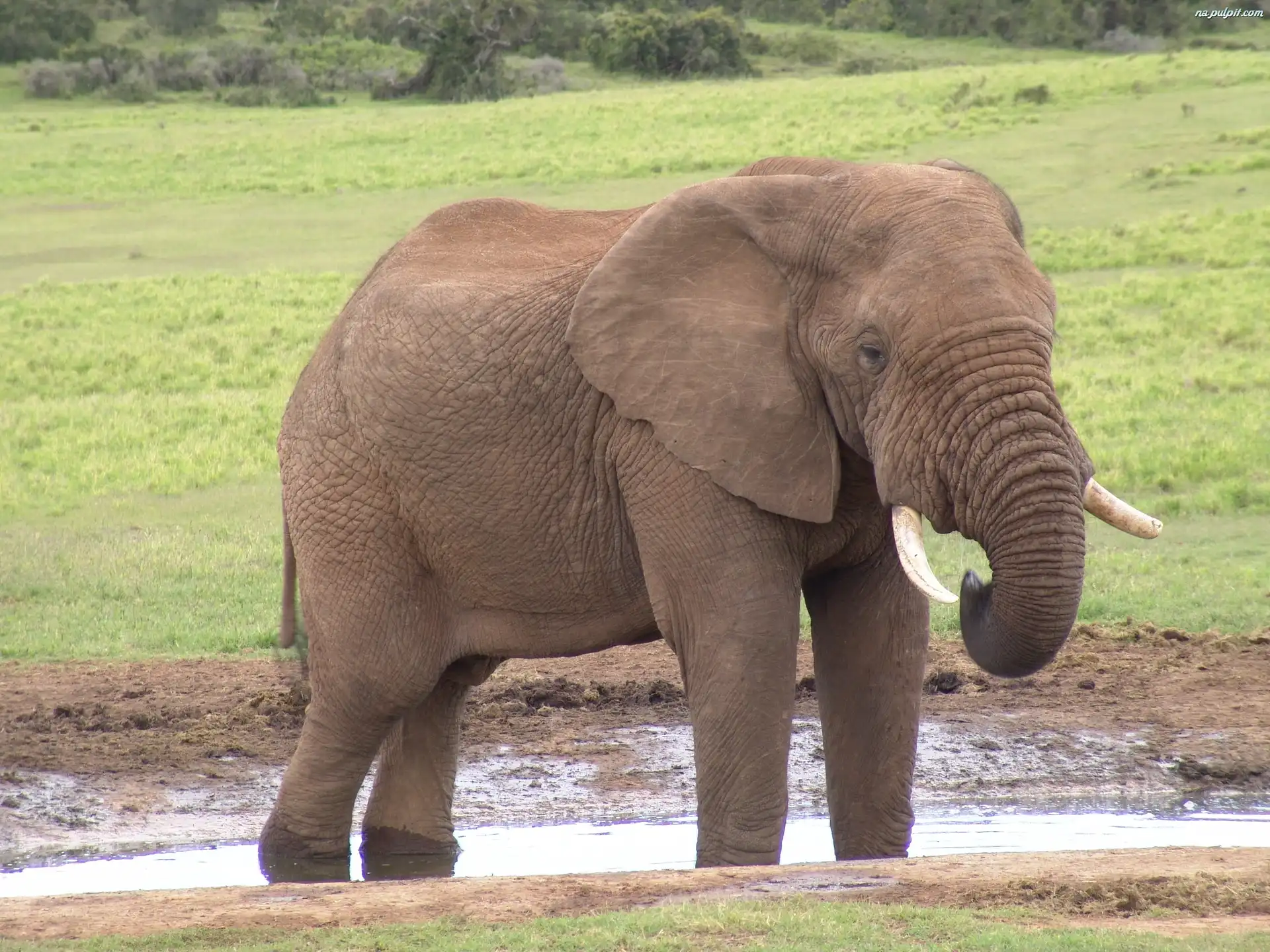 Trawa, Afrykański, Słoń, Woda Na Pulpit