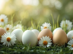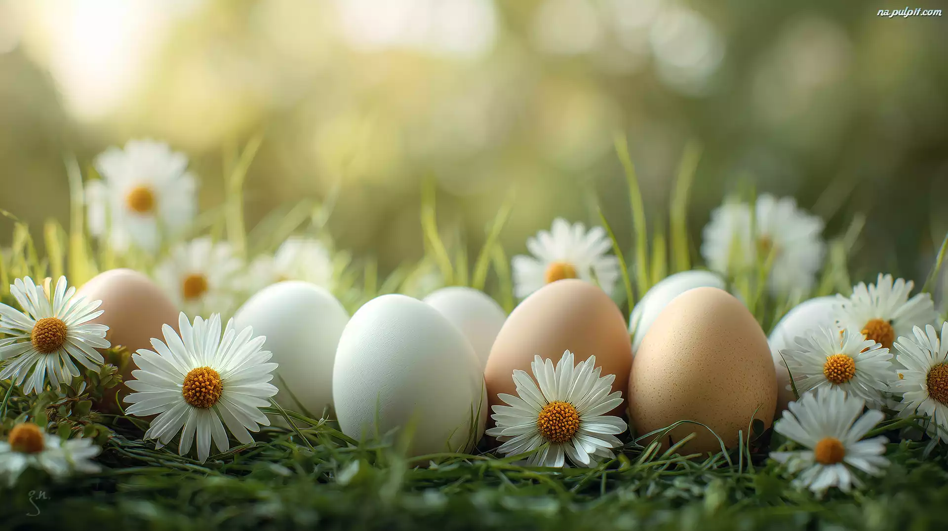 Jajka, Trawa, Stokrotki, Grafika AI Na Pulpit