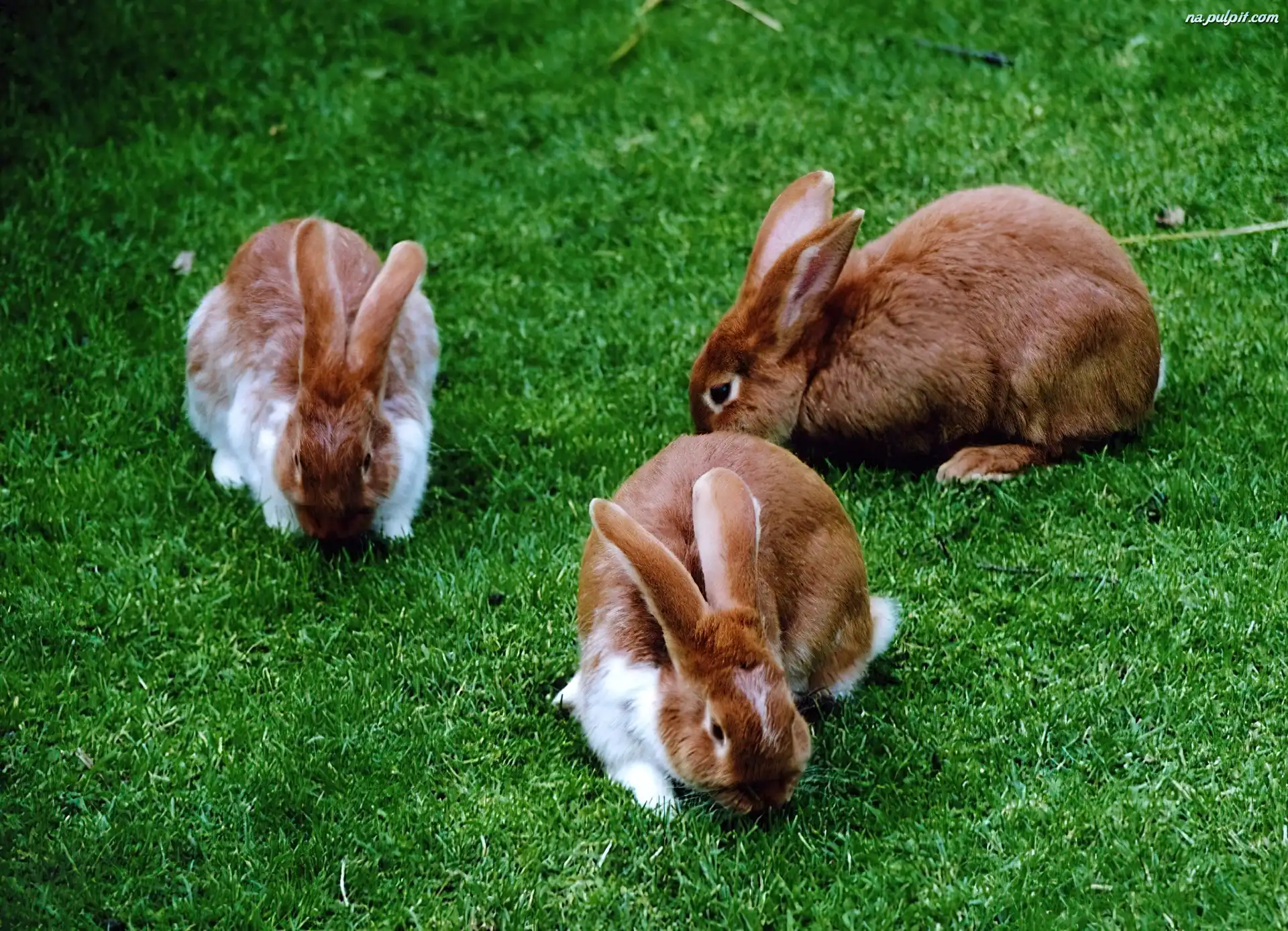 Trawa, Króliki, Trzy, Zielona Na Pulpit