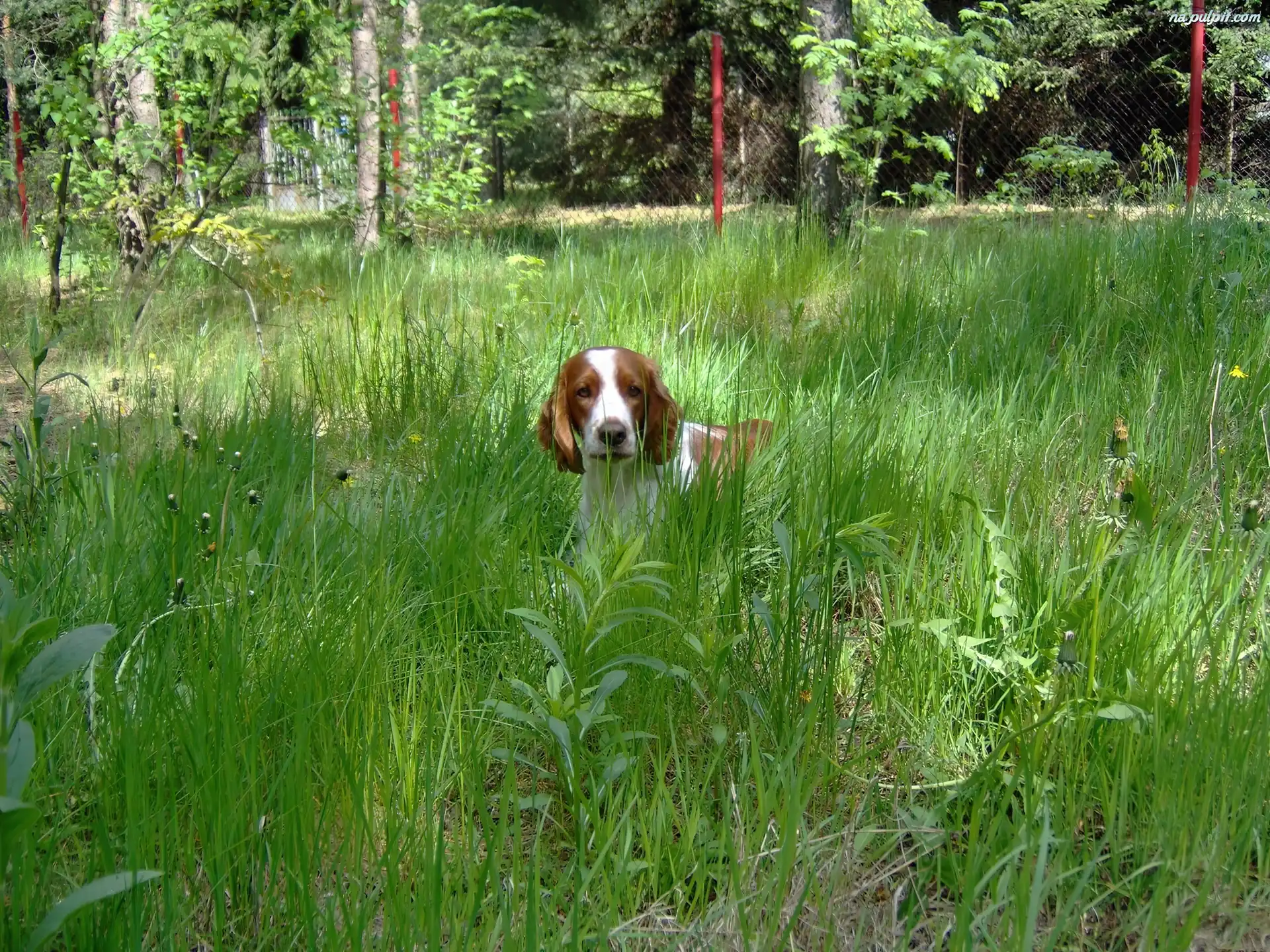 trawa, Springer spaniel walijski, wysoka Na Pulpit