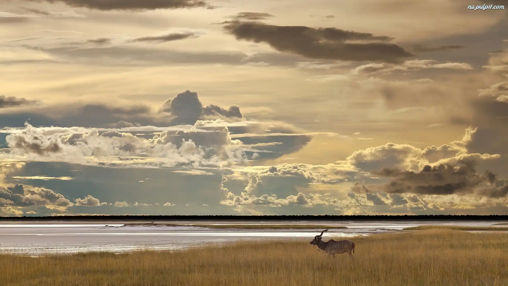Trawa, Niebo, Zachmurzone, Gazela Na Pulpit