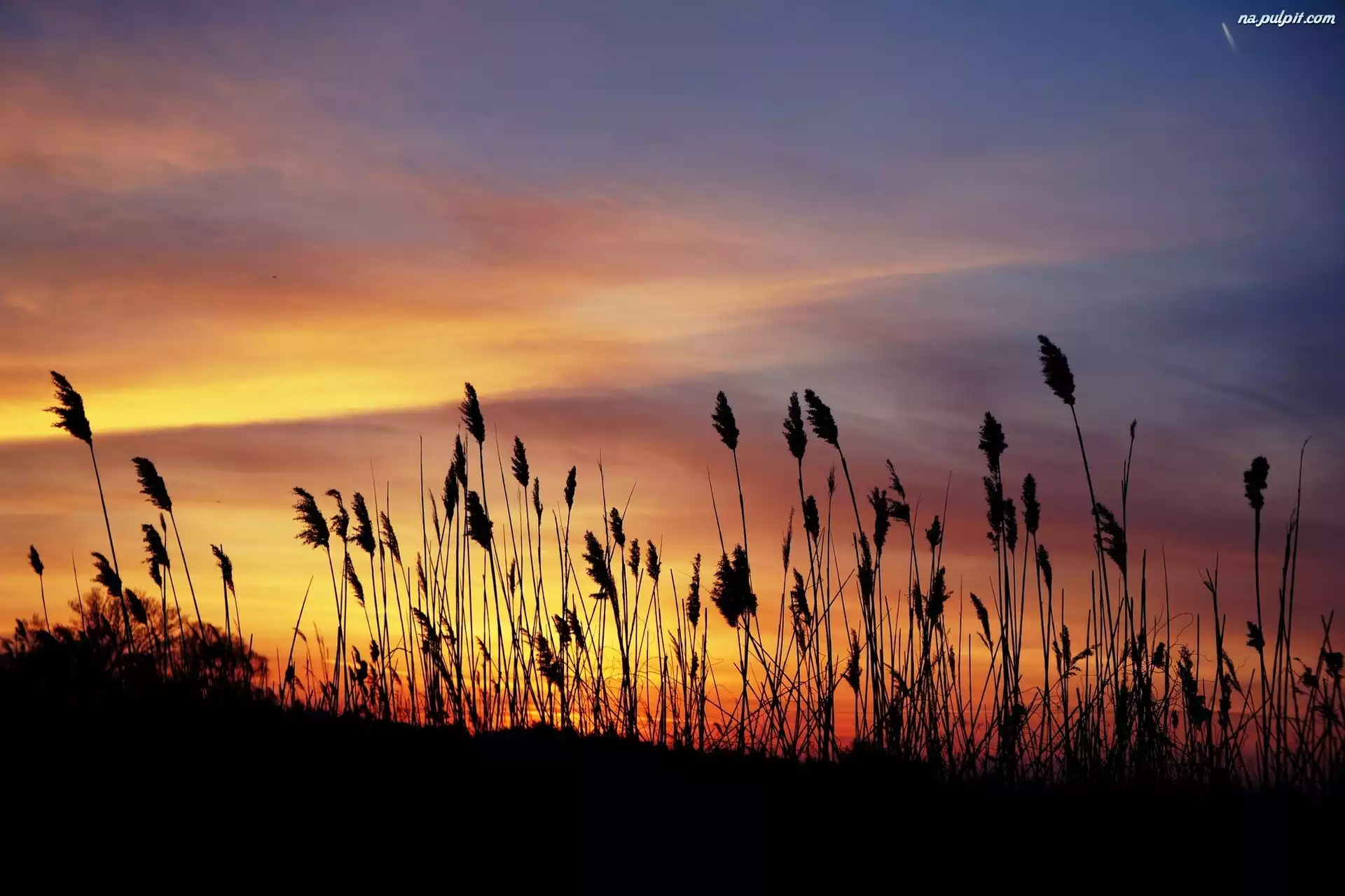 Trawa, Łąka, Słońca, Zachód, Wysoka