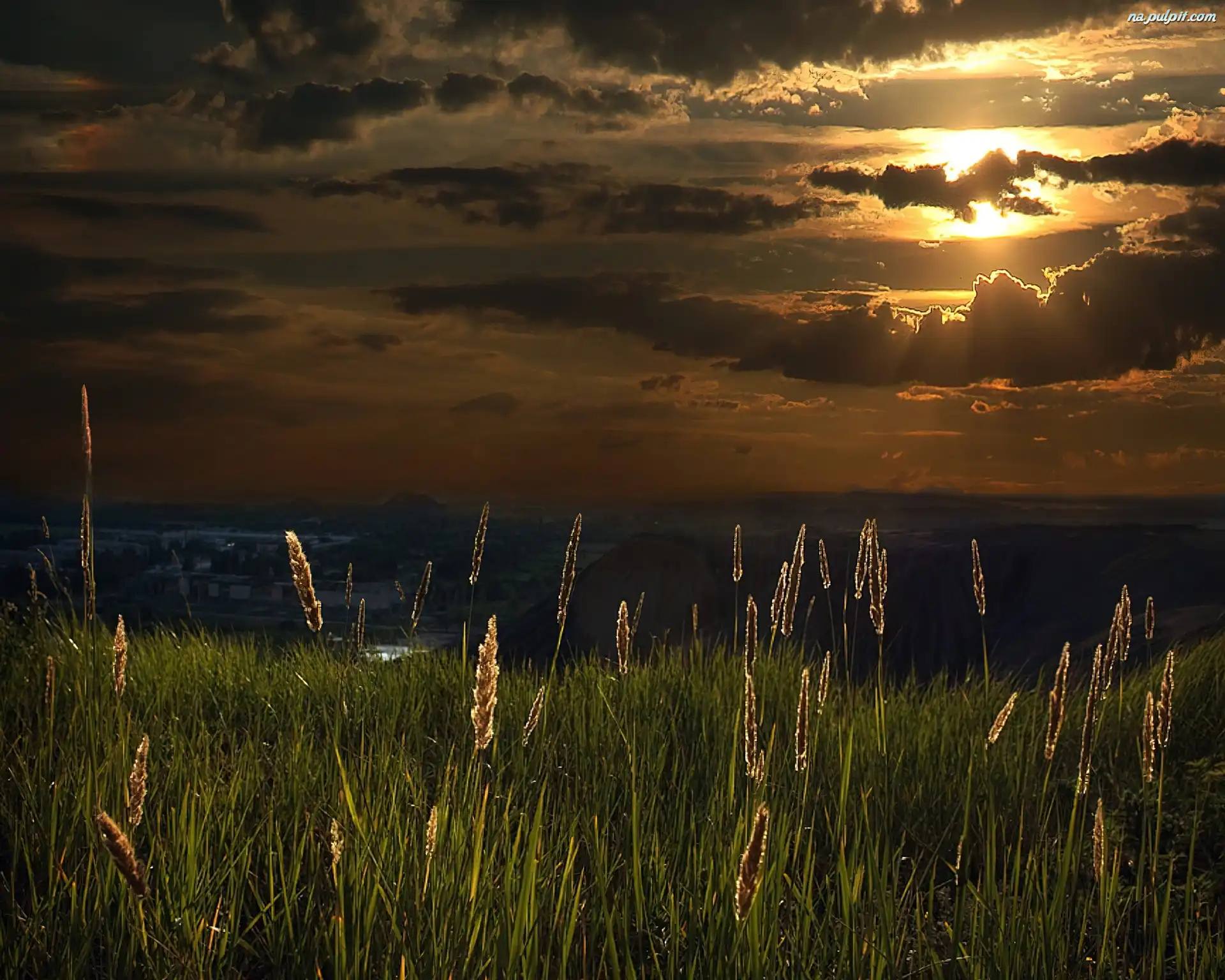 Trawa, Słońca, Zachód, Chmury Na Pulpit
