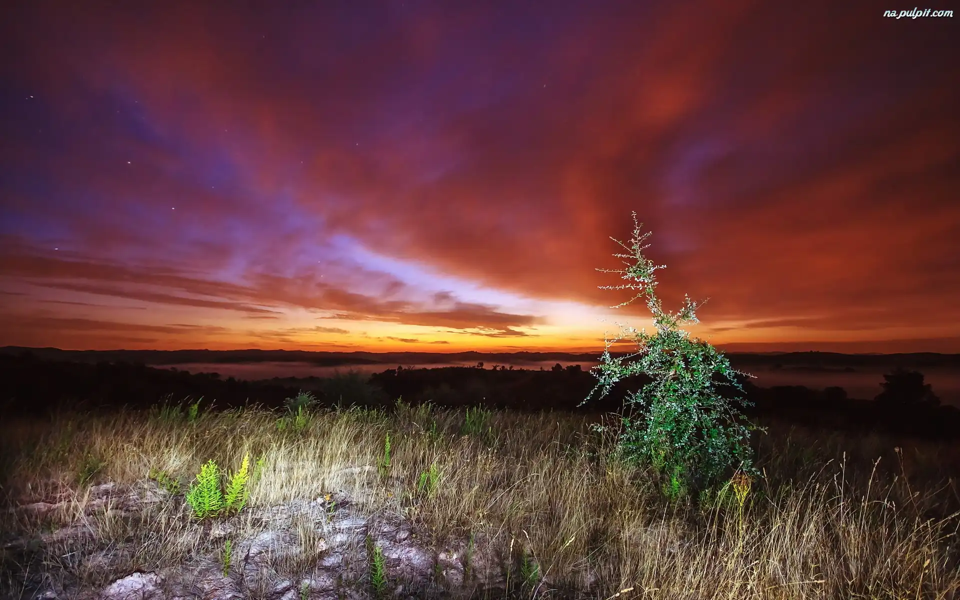 Trawa, Słońca, Zachód, Drzewko